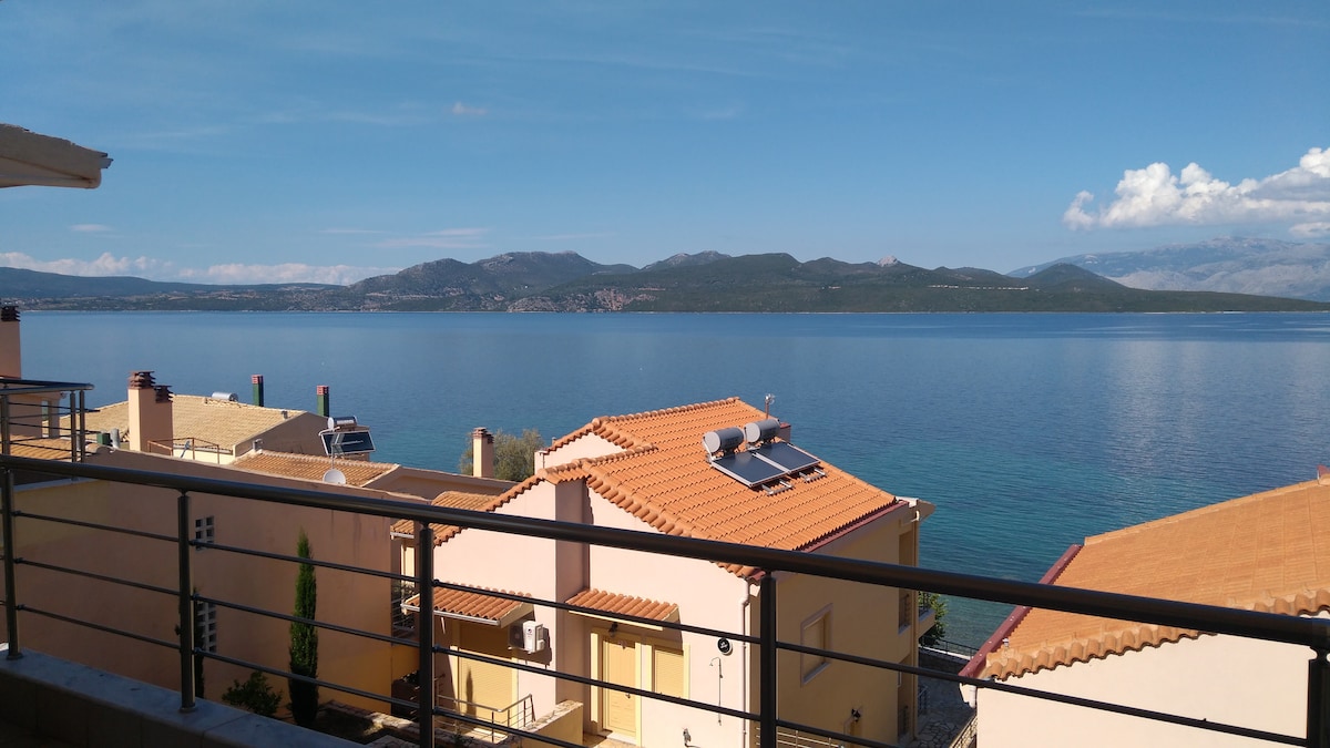 Welcome to Ouranos. Enjoy this spacious loft apartment with high ceilings and a magnificent view of the Ionian Sea and sky. Able to accommodate 4 people with a double bed in a private bedroom and another double bed in an open loft space. A full kitchen and washing machine are also available for your convenience. Next to the ocean and close to Nikiana, A perfect spot to relax or explore.