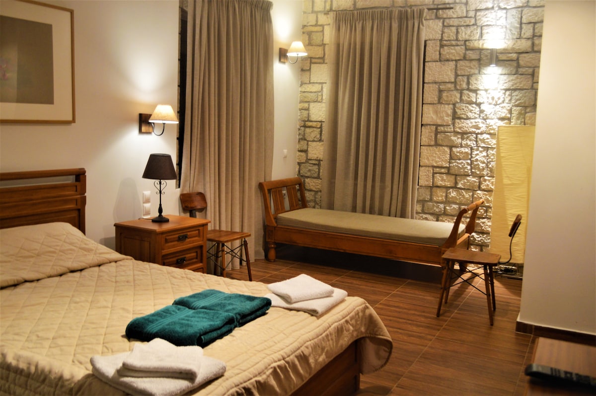 Dressed in white, with touches of the blue sky and the Ionian sea, villa Pasithea offers a comfortable stay in fine island style. On the ground floor, there is a spacious living room with fireplace and double sofa-bed, fully equipped kitchen and a bedroom with bathroom. The ground floor is connected internally to the upper floor through a wooden staircase, where the second bedroom and bathroom can be found.