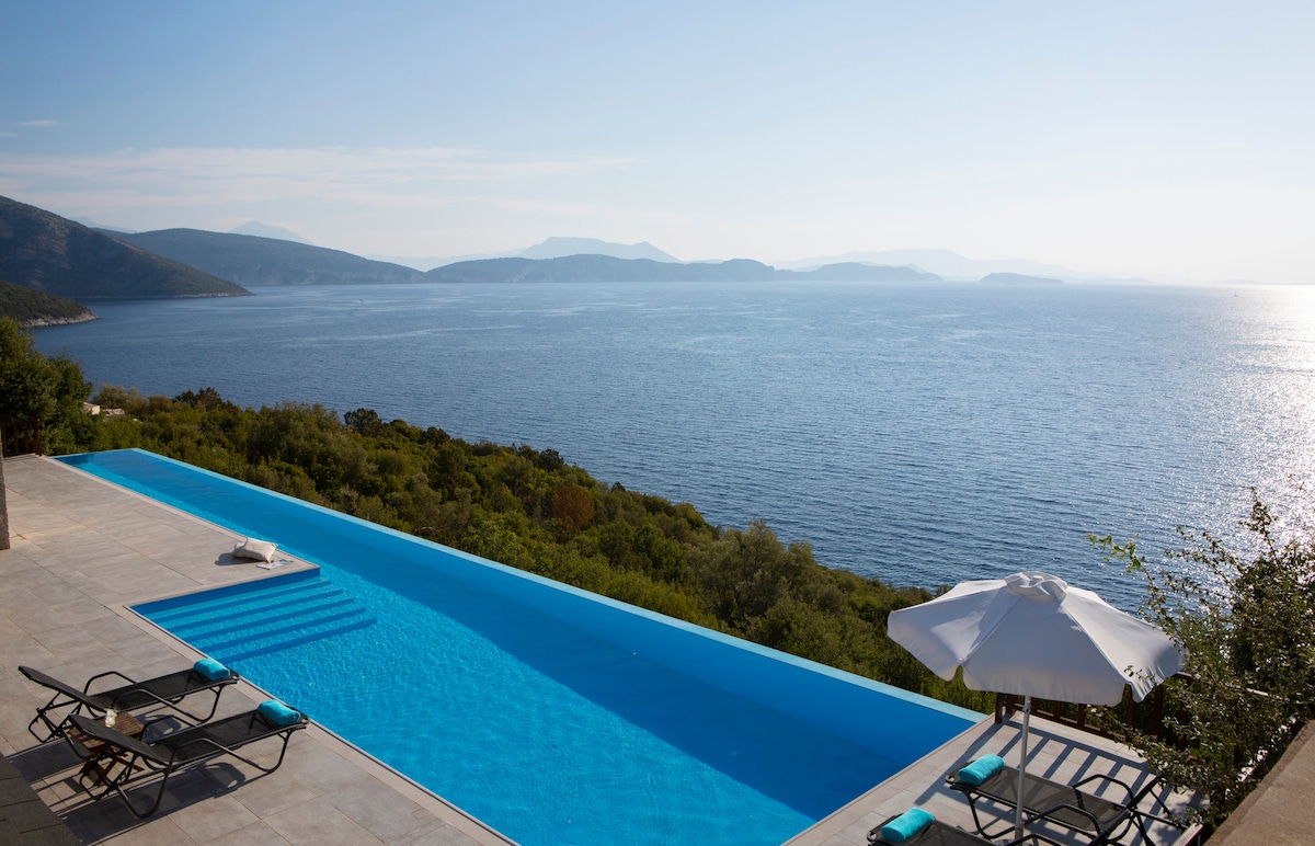 莱夫卡达Orraon豪华别墅 -全景和泳池