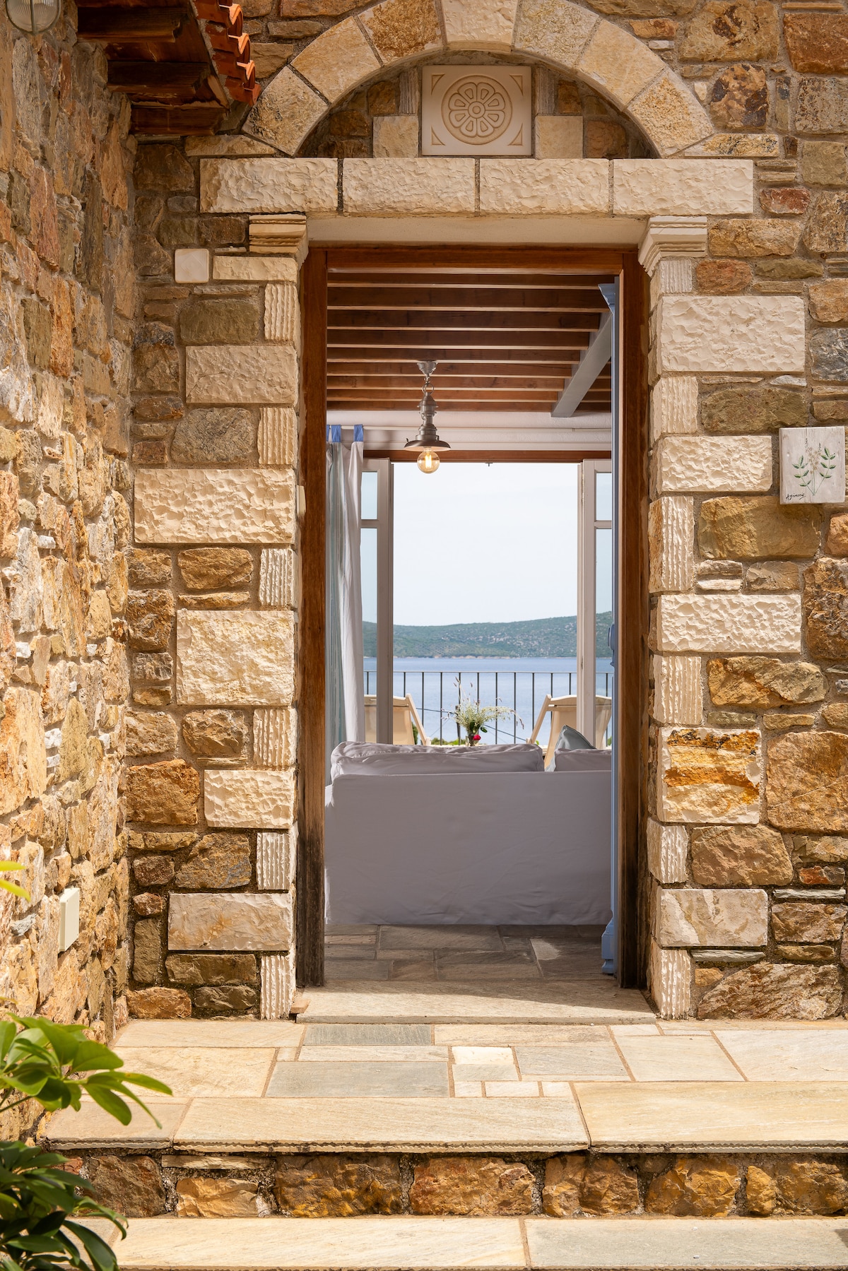 Designed according to the standards of traditional Greek architecture, the StoneHouse is set in a fully private hill among olive and fruit trees as well as colorful flowers. An ideal place to drink a glass of wine as dusk and sunset colors fill the sky, with a breathtaking view of the iconic beach of Agios Dimitrios, the most beautiful beach of the island of Alonnisos. Swim in the "Natura" protected beach, take a hike in a picturesque scenery or just enjoy your privacy and relax..