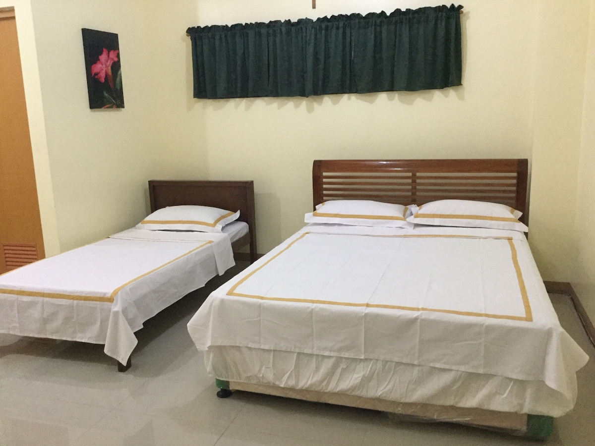 Welcome to our cozy guest house in Daraga, Albay! Peaceful and budget-friendly, it accommodates 4 people (extra guests allowed with an additional charge). A bakery is right next door, while cafés, grocery stores, and laundry services are all nearby. With easy GrabCar access, you're just minutes away from Mayon Volcano, Cagsawa Ruins, and the best of Albay. Perfect for families, groups, students, and backpackers alike! We also offer breakfast options for an added cost — simply order in advance