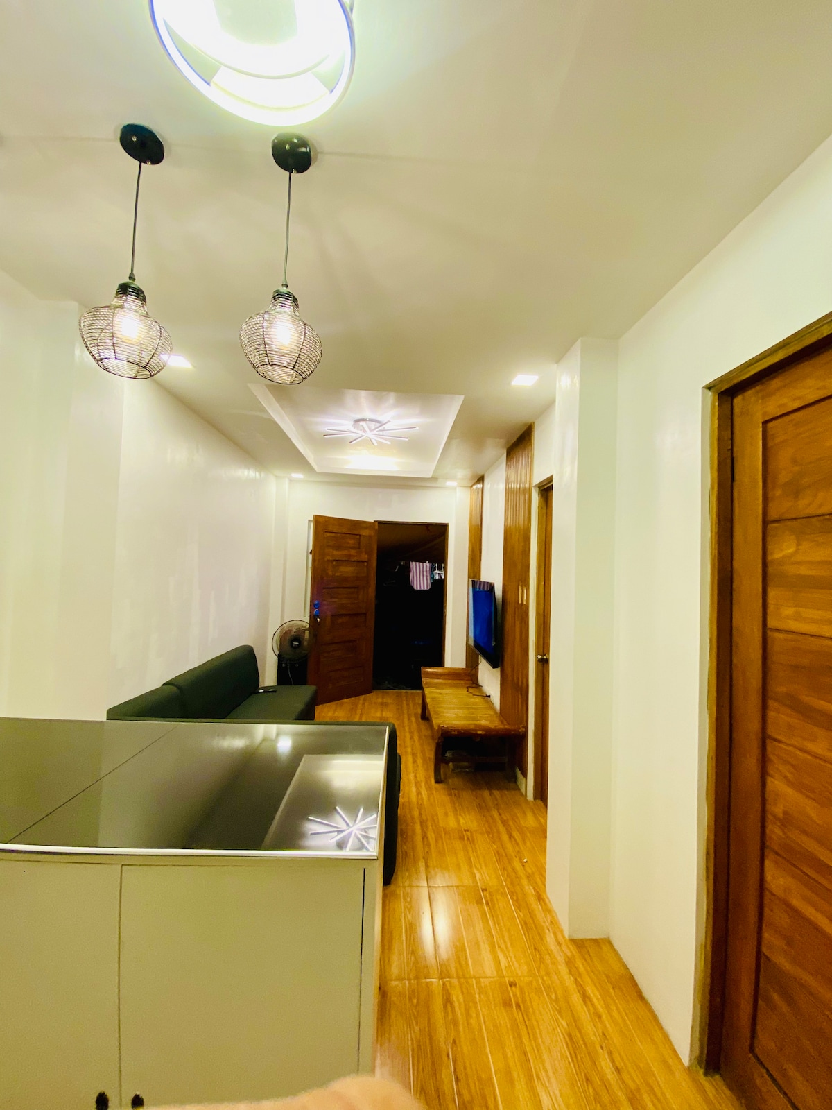 3 bedroom unit located in the 1st floor. - Good for 6 to 13 pax only. - Shared kitchen with owner - - Kitchen has gas stove & own kitchenware. - Private dining area with utensils, glass and plates - Free drinking water, - Free wifi and gated parking. - All 3 rooms has aircon & private CR. - Tissue & towels are provided. - No pool and no television - Please bring your own toiletries