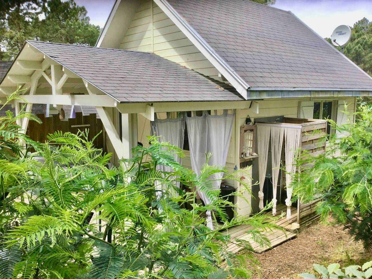 Au cœur du Bassin d'Arcachon, chalet de 49m² avec terrasse couverte, situé sur la propriété d'une villa. A 1 km de tous les commerces, des pistes cyclables, des parcs de loisirs, à 10km d'Arcachon, à 12km de la Dune du Pilat et plages océanes. Cuisine équipée, SDB, WC, douche, serviettes,lave linge. 2 chambres lits 160x200 avec draps. Petit jardin privatif, transats, plancha,parking privé fermé avec vidéo JACUZZI FERMÉ DE NOV À AVRIL, en supplément de 20€ la séance et uniquement sur réservation