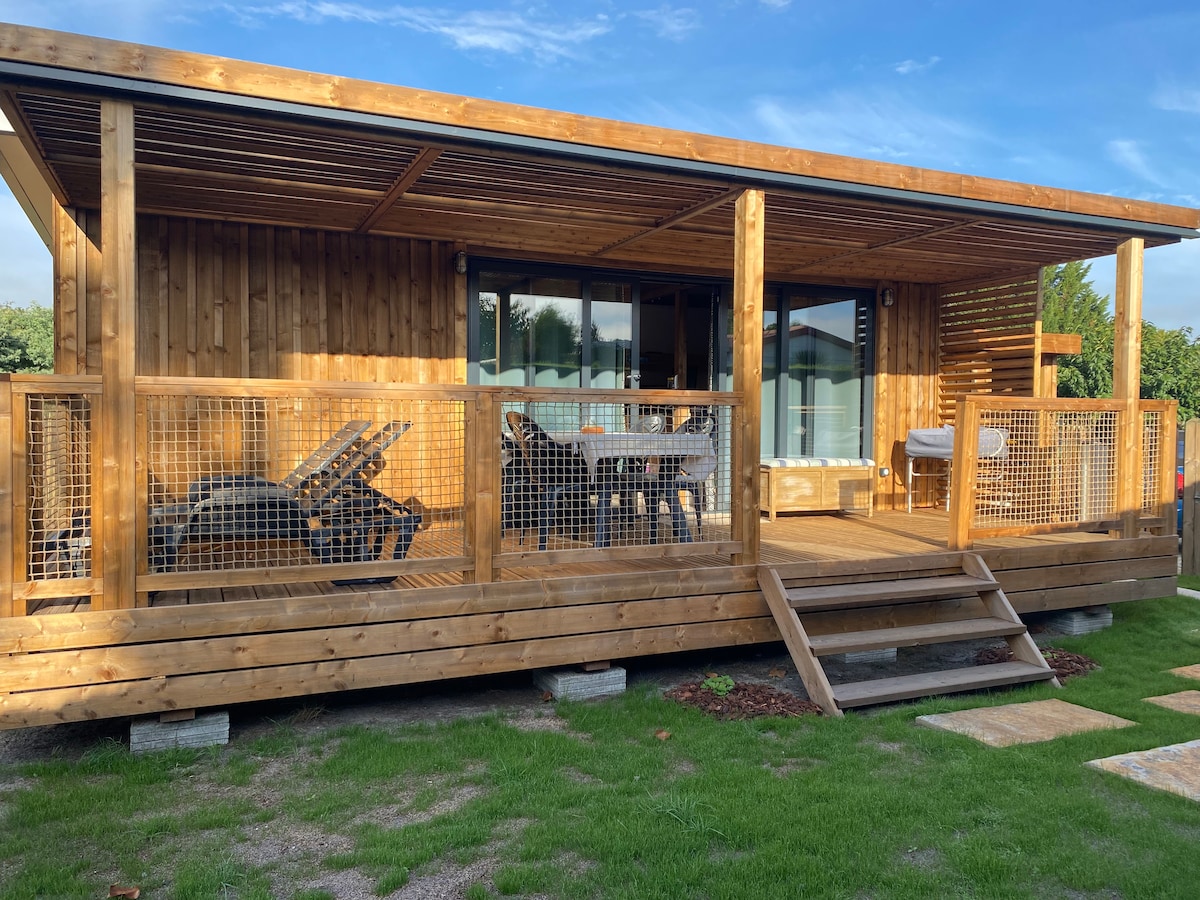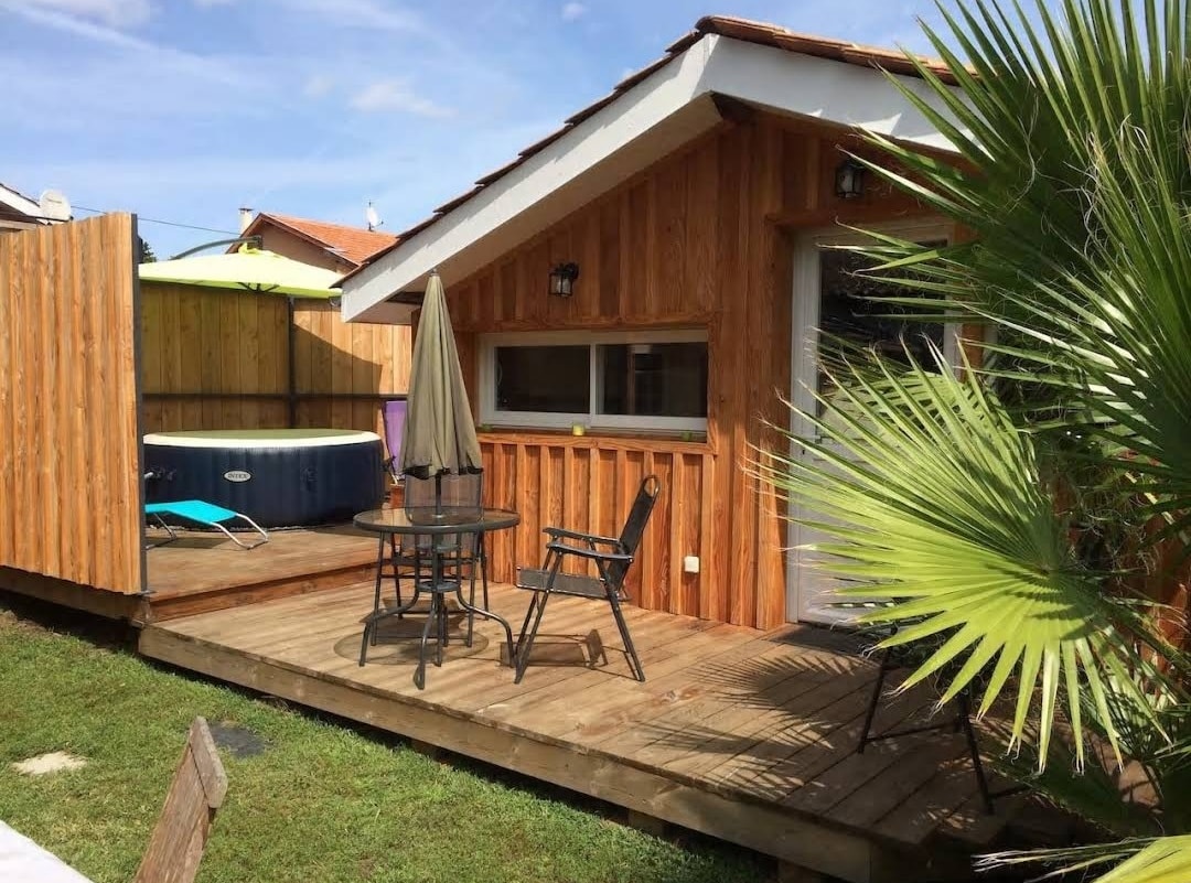 Chalet de 40 m2, lumineux, entièrement équipé et climatisé, avec wifi. - Deux chambres - Cuisine ouverte sur le séjour (lave-vaisselle, micro-onde, cafetière Senseo,bouilloire, four, frigo-congélateur, grille-pain, plaque induction). - Salle de bains avec baignoire relax et WC. En extérieur vous profiterez d'un jardin privé de 250 m2, SPA, terrasse de 50 m2 sans vis-à-vis avec un espace barbecue. Stationnement pour un véhicule. Linges de maison et serviettes de toilettes fournies.