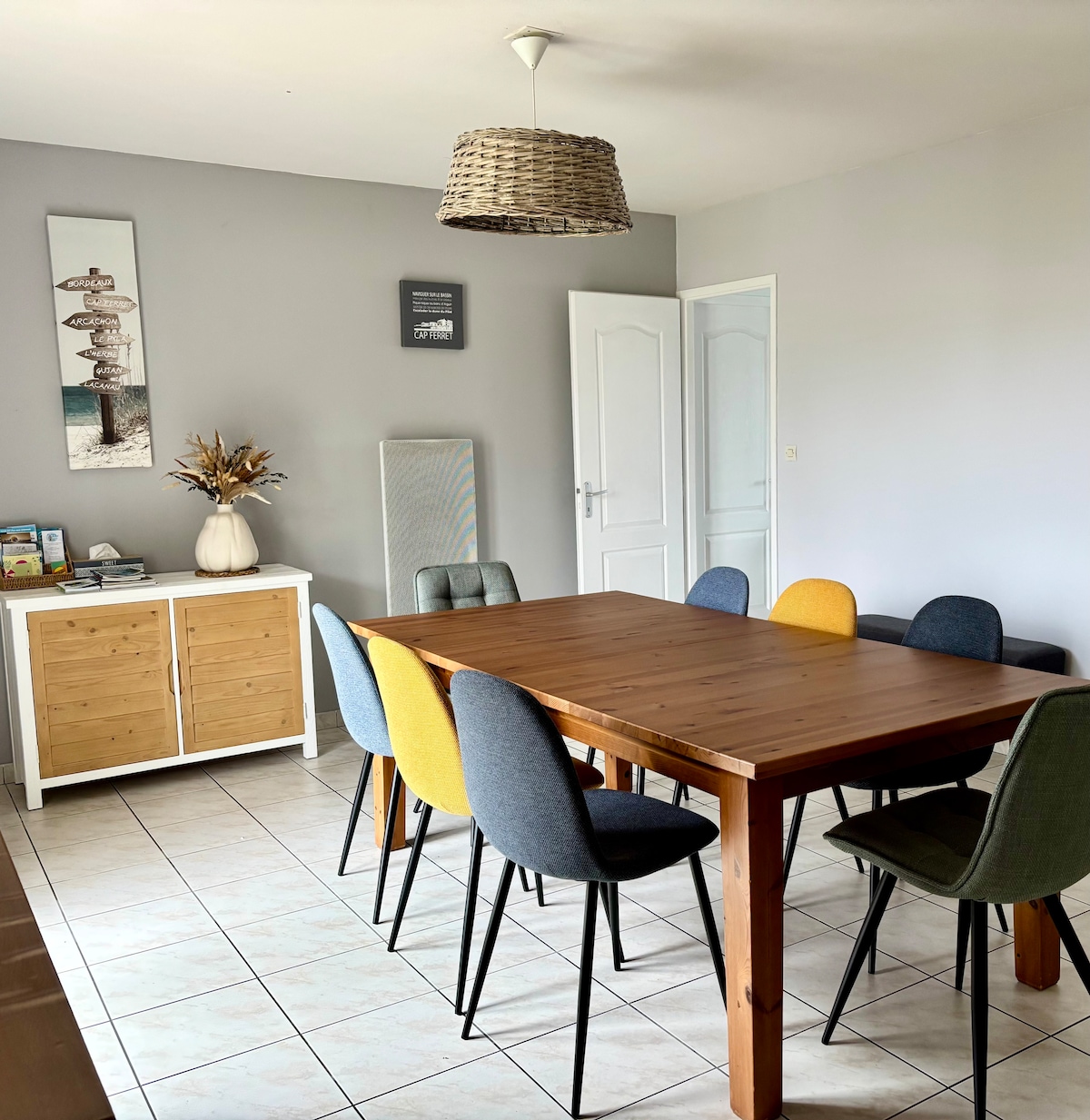 Venez découvrir le Bassin d'Arcachon et tous ses petits endroits préservés. Vous profiterez d'un appartement de 55m2 tout équipé, une grande chambre et une terrasse de 30m2 . Idéalement situé dans le village, vous pourrez tout faire à pied ou à vélo. La plage se trouve au bout de la rue à 50m, la place du marché à 200m et le centre-ville avec tous ses commerces de proximité 500m. A 600m du port ostréicole, idéal pour déguster un plateau de fruits de mer. Bien sur, L'océan se trouve à 8km.
