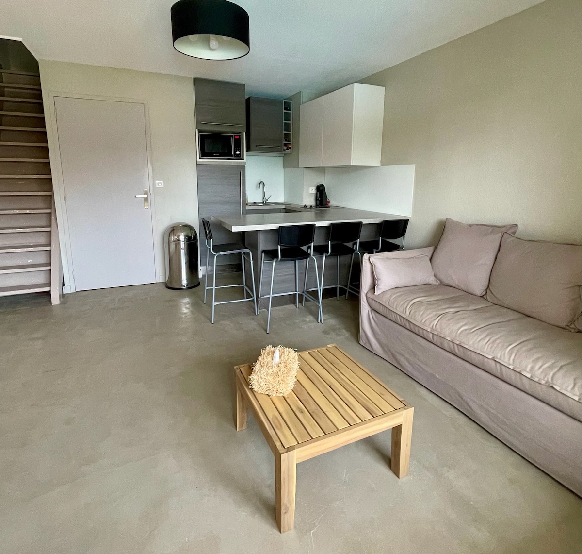 Le crocolion est un appartement situe en plein centre d'Arès .Il se compose d un salon équipé d une Tv a écran plat et d un canapé lit ,d'un coin cuisine avec frigo,plaque à induction lave vaisselle ,cafetiere Nespresso ,four micro-onde etc...A ce niveau on retrouve également la salle de bain avec WC et sa douche à l'italienne .Les serviettes de toilette et les draps sont fournis a titre gracieux . D un naturel prévenant nous sommes là, pour rendre votre sejour le plus agreable possible .