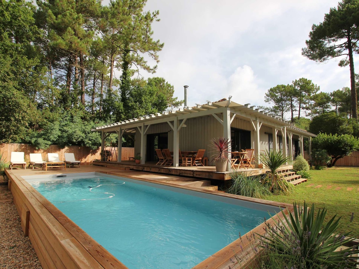 典型的木制别墅,游泳池,位于Bassin-Océan之间