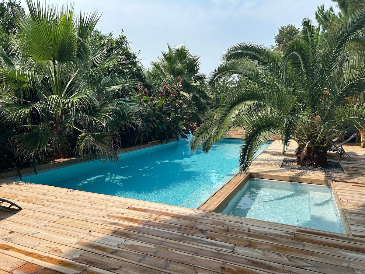 Appartement en dessous de notre logement, au rez de jardin, de 2 chambres, avec deux terrasses, piscine chauffée, 25 degrés d’avril à novembre, sur un grand parc de 2400 m2, ce qui est rare à cet emplacement et lui confère un charme discret et merveilleux. Avec ses pins centenaires, cachée dans la verdure, la suite est à 2 min à pied de la plage d’Eyrac et 5 min du centre ville d'Arcachon : ses restaurants, ses commerces, ses animations, profitez de vos vacances sans voiture…ni embouteillage !