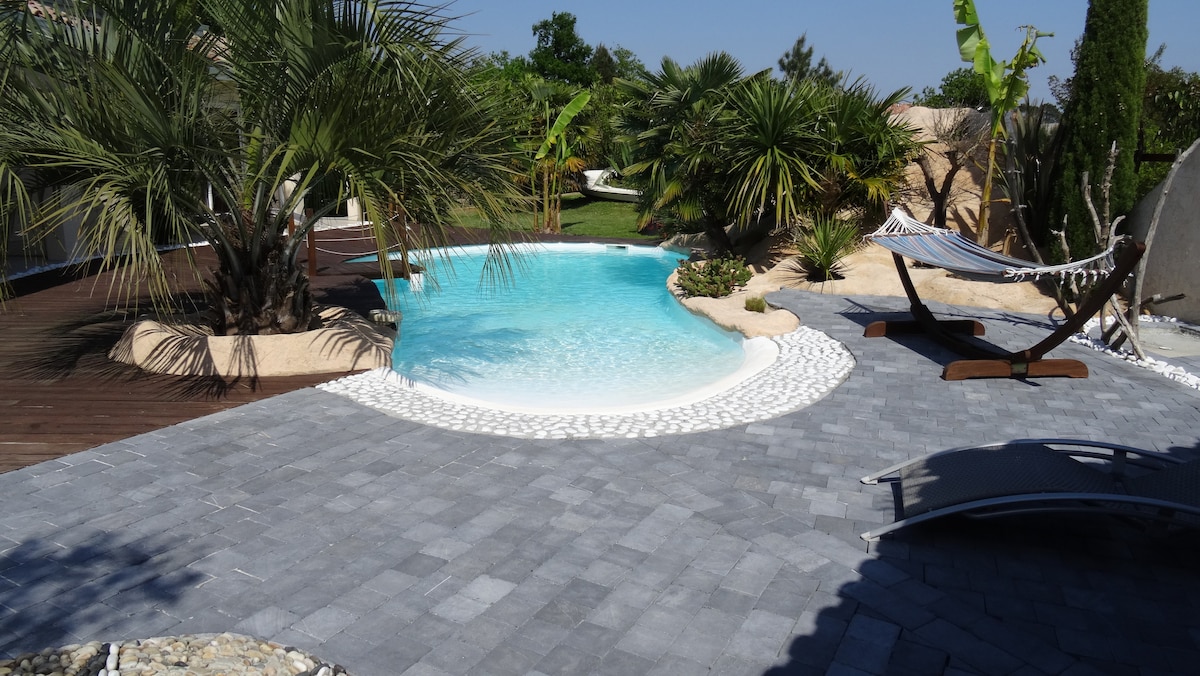 🌿 Prenez le large au cœur de la nature ! Bienvenue à "Douceur Marine", un studio avec sa cuisine extérieure, nichée dans un grand jardin arboré. Ce cocon cosy vous invite à la déconnexion dans une ambiance apaisante. ☀️ Piscine chauffée en saison, à 10 min des plages océanes et du bassin d’Arcachon 🍂 Nouveauté 2025 : Offrez-vous un moment de bien-être dans notre nouvel espace détente ! Accessible en supplément sur réservation : sauna, jacuzzi, tisanerie, coin relaxation, massages...
