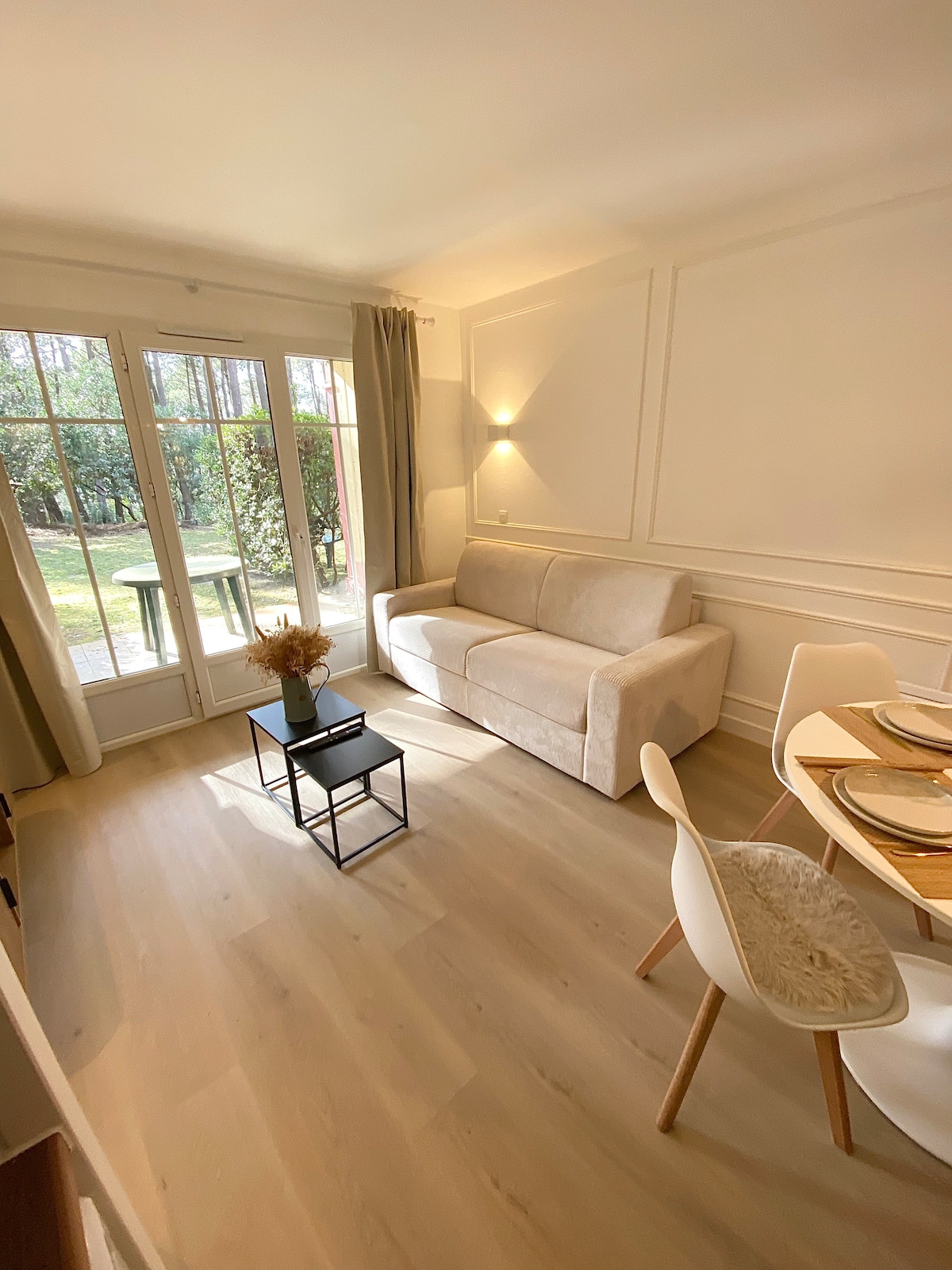 Entre Lac et Océan profitez du micro-climat très particulier de Bisca-Lac : moins chaud l'été et moins froid l'hiver... Très bel appartement T2, entièrement rénové, proposant une surface habitable de 34m2 ainsi qu'une Loggia de 8m2. Superbe vue directe sur le Golf et la pinède environnante. Situation idéale un bâtiment très calme et avec une vue très arborée. IdéalI?I-pour repos... mais aussi, à moins de 100m , 2 piscines gratuites pour adultes et enfants ainsi que des jeux d'enfants -