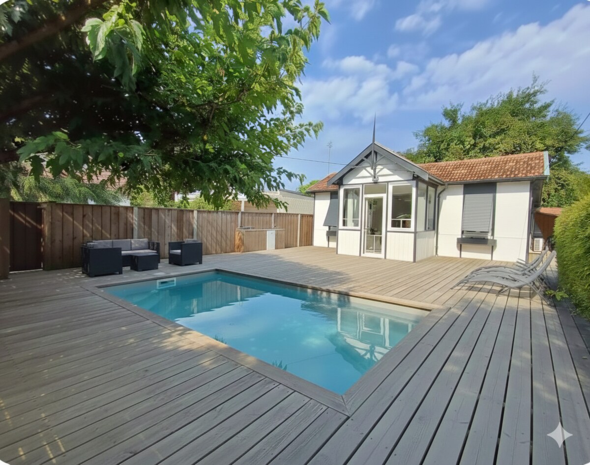 Le Teich au calme maison de plain pied refaite à neuf de 100m² avec parking. Un séjour-cuisine ouverte équipée, 3 chambres, 1 sdb , 1 wc séparé. Terrasse 100m²avec cuisine extérieure abritée avec plancha, barbecue à charbon, bar. Trampoline, baby-foot, table de ping-pong, jeux de plage et de société. SPA PRIVATIF TOUTE L’ANNÉE, EAU CHANGÉE POUR CHAQUE LOCATION. Piste cyclable devant la maison (Cap Ferret Arcachon), 5 vélos disponibles avec siège bébé. WIFI fibre netflix, prime, disney + gratuit.
