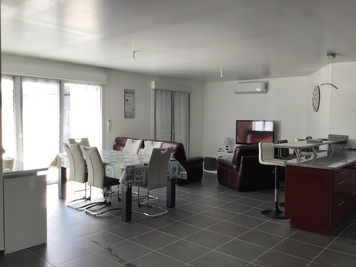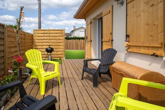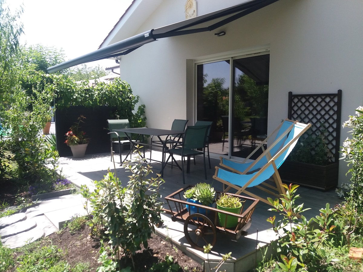 Au cœur du Bassin, gîte en duplex récent de 55 m2 avec une entrée indépendante. RDC : Cuisine équipée, Salon canapé lit. Séjour table , Salle d’eau avec douche à l’italienne et WC Etage : chambre Familiale (1 lit double et 2 lits simples ) Jardin et terrasse bois : Table 6pers, Parasol, Plancha à Gaz, 2 transats, salon de jardin, Equipements : Réfrigérateur, Congélateur, Lave-Vaisselle, Plaque induction, Four, Micro-ondes, Nespresso, Grille-pain, Bouilloire, Lave linge