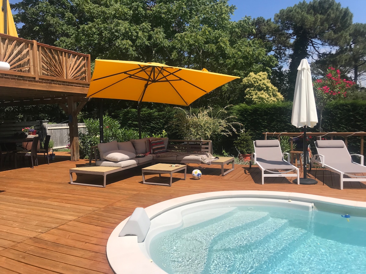 Le chalet est situé à Biganos au carrefour du bassin d'arcachon (Cap ferret, Bordeaux et Arcachon). Détendez-vous dans ce logement calme et élégant. Il se compose d'une pièce principale avec un lit en 160, une petite cuisine équipée (lave vaisselle, expresso, grille pain bouilloire, four micro ondes grill, réfrigérateur et plaque induction. La salle d'eau avec douche à l'italienne. Une mezzanine avec lit de 140cm. A l'extérieur, un jacuzzi pour 4 personnes et une terrasse avec bain de soleil.