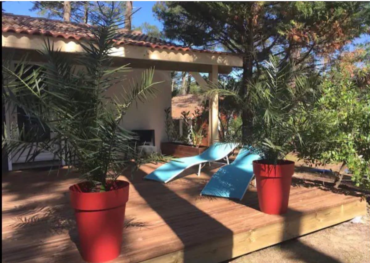 Location vacances village KHELUS : Maisonnette proche du Bassin d'Arcachon dans parc résidentiel de loisirs entièrement sécurisé et surveillé. Elle est située sur un terrain de 200m² (terrasse et parking) avec internet FIBRE. 15/06 au 15/09 : Piscine surveillée de 400m² + pataugeoire. Mini club pour les enfants. Jeux pour enfants, terrain de tennis, ping-pong, mini-golf, terrain de foot, beach-volley, animations en journée et soirées à thèmes. Terrains de pétanque ouverts toute l'année.