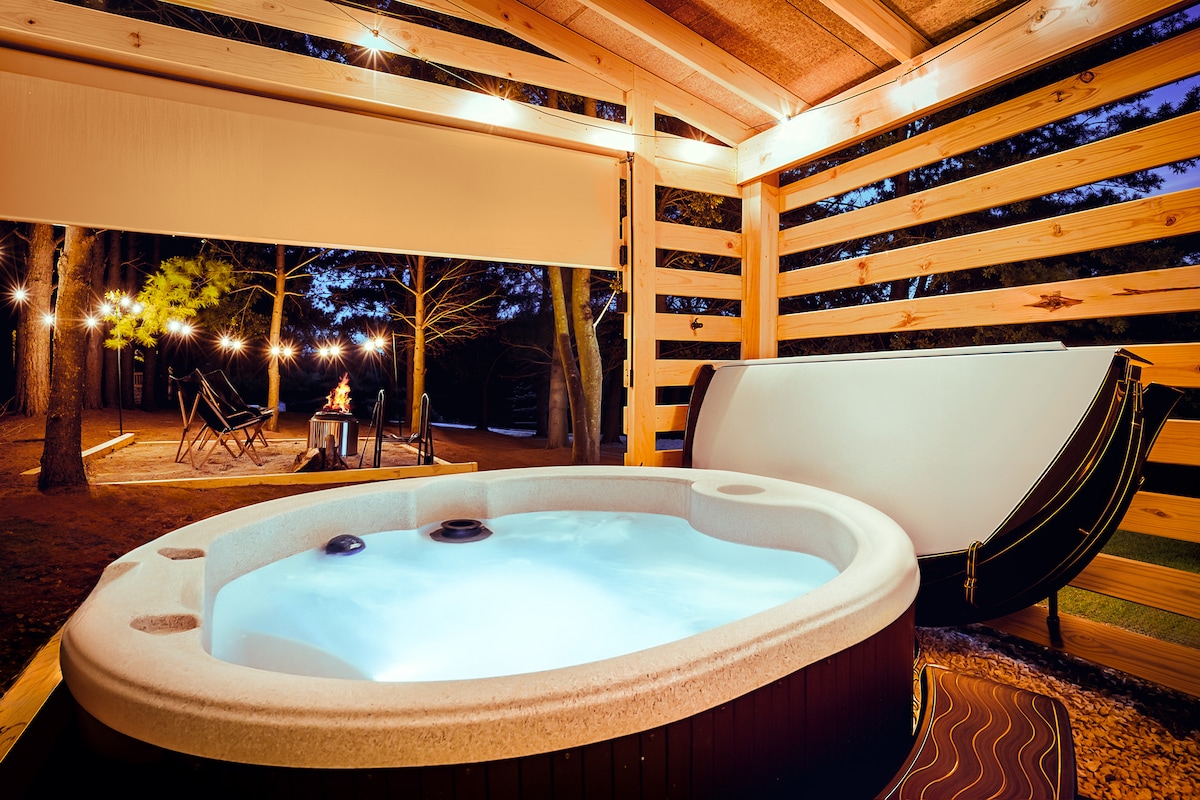热水浴缸+火坑|现代木屋,可供两人入住