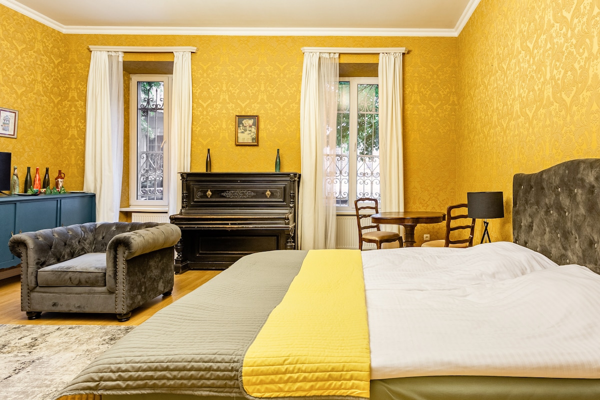 The apartments are located in Old Tbilisi on Ivane Machabeli Street, near Freedom Square. The historic building from the second half of the 19th century, designed in Neo-Moorish style, preserves the authentic spirit of the city. High ceilings, wooden parquet and antique doors are combined with modern comfort. Quiet courtyard, perfect location for walks, cafés and museums nearby. Self check-in and fast Wi-Fi.