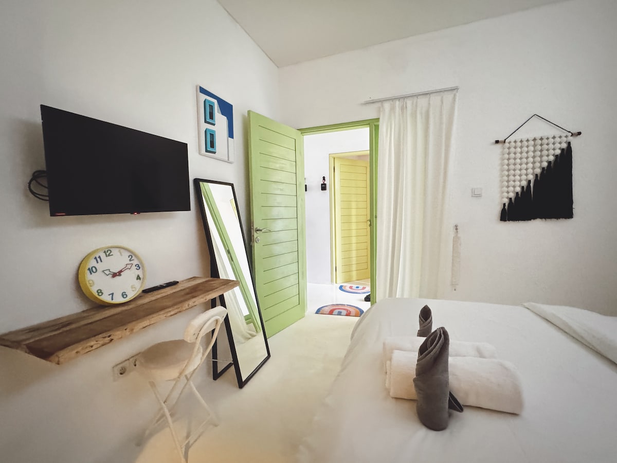 Welcome to Sunny Muse—a light and peaceful suite designed for modern travelers. Enjoy a private balcony with views across Canggu, just minutes from surf, cafés, and nightlife. • Steps 350m from Nelayan Beach • Easy access to Revolver, Fold, KYND and Canggu’s hits cafes • Quick reach to Finns, Atlas, and hits night life Fast Wi-Fi and full-time guest support included.