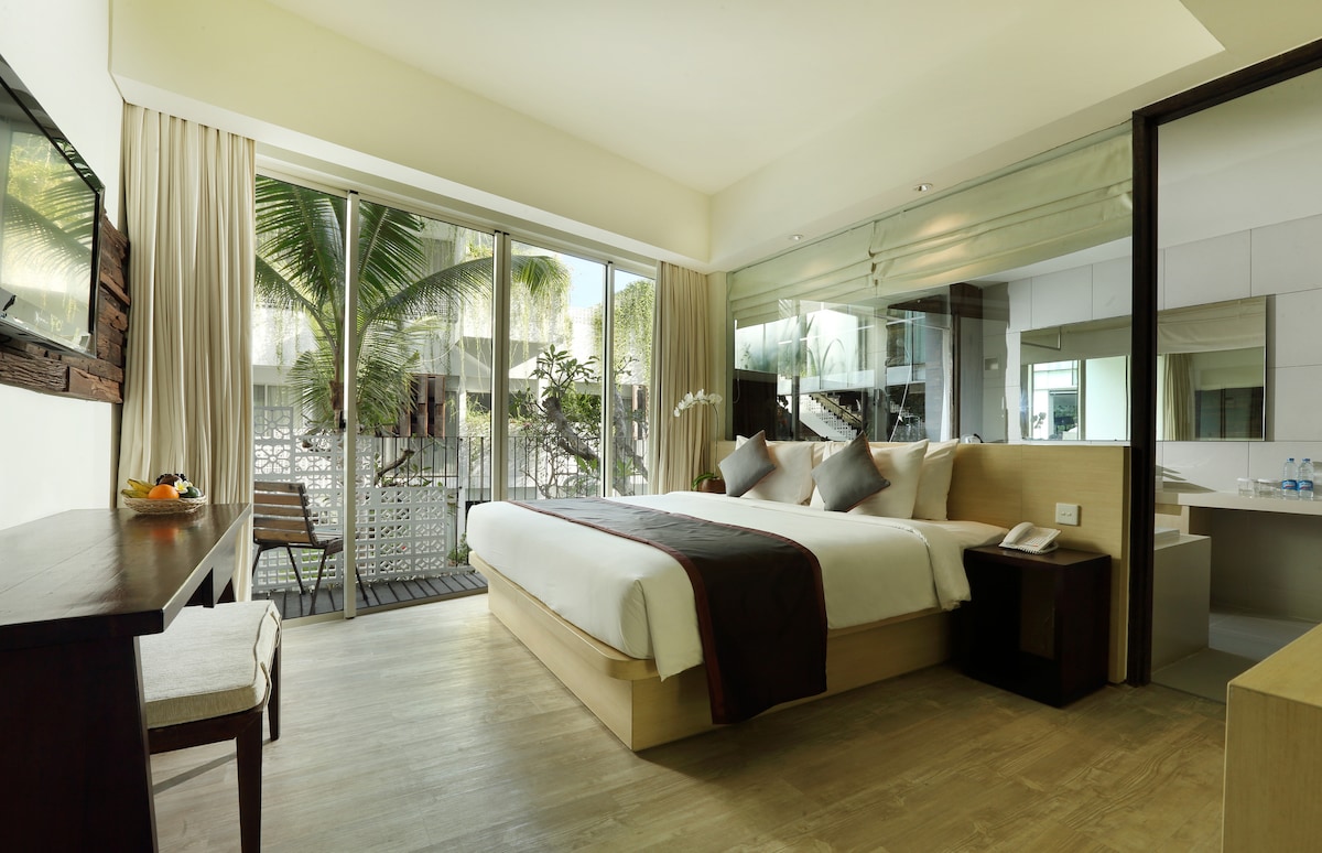 The room is part of 4 stars **beach front** hotel in Kuta and managed by international hospitality brand. It is about 15 minutes drive away from the airport. Tourist attraction nearby: - in front of Kuta Beach - 5min walk to Legian Beach - 10min drive to Seminyak Beach - 5min walk to Beach Walk Mall - 10min drive to Discovery Mall - 15min drive to International Airport - 7min walk to Ground Zero Kuta - Within walking distance to shopping street