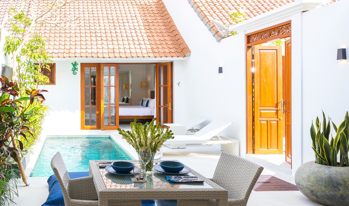 Enjoy your romantic private times in a luxurious complex, close to a fine selection of world-class cafes, restaurants and beach clubs. But perfectly hidden in a serene and quiet villa neighbourhood. This villa features an ensuite bathtub and offers a perfect dip-in pool. Enjoy your floating breakfast under the wood panels with sunlight gently pouring through. Chillax on the bean bag or sun loungers at your choice while soaking up the view of the garden.