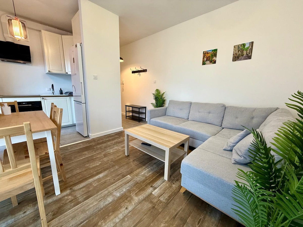 Nowoczesne i w pełni wyposażone mieszkanie idealne dla 4 osób – zarówno na pobyt biznesowy, jak i wypoczynek. Do dyspozycji: sypialnia z podwójnym łóżkiem, salon z rozkładaną sofą i aneksem kuchennym, łazienka oraz balkon. Szybkie Wi-Fi, Smart TV, miejsce parkingowe i świetne połączenie z centrum Warszawy. Położone w cichej okolicy przy Aluzyjnej 6, blisko sklepów i komunikacji miejskiej. Idealne dla podróżujących służbowo lub rodzin.
