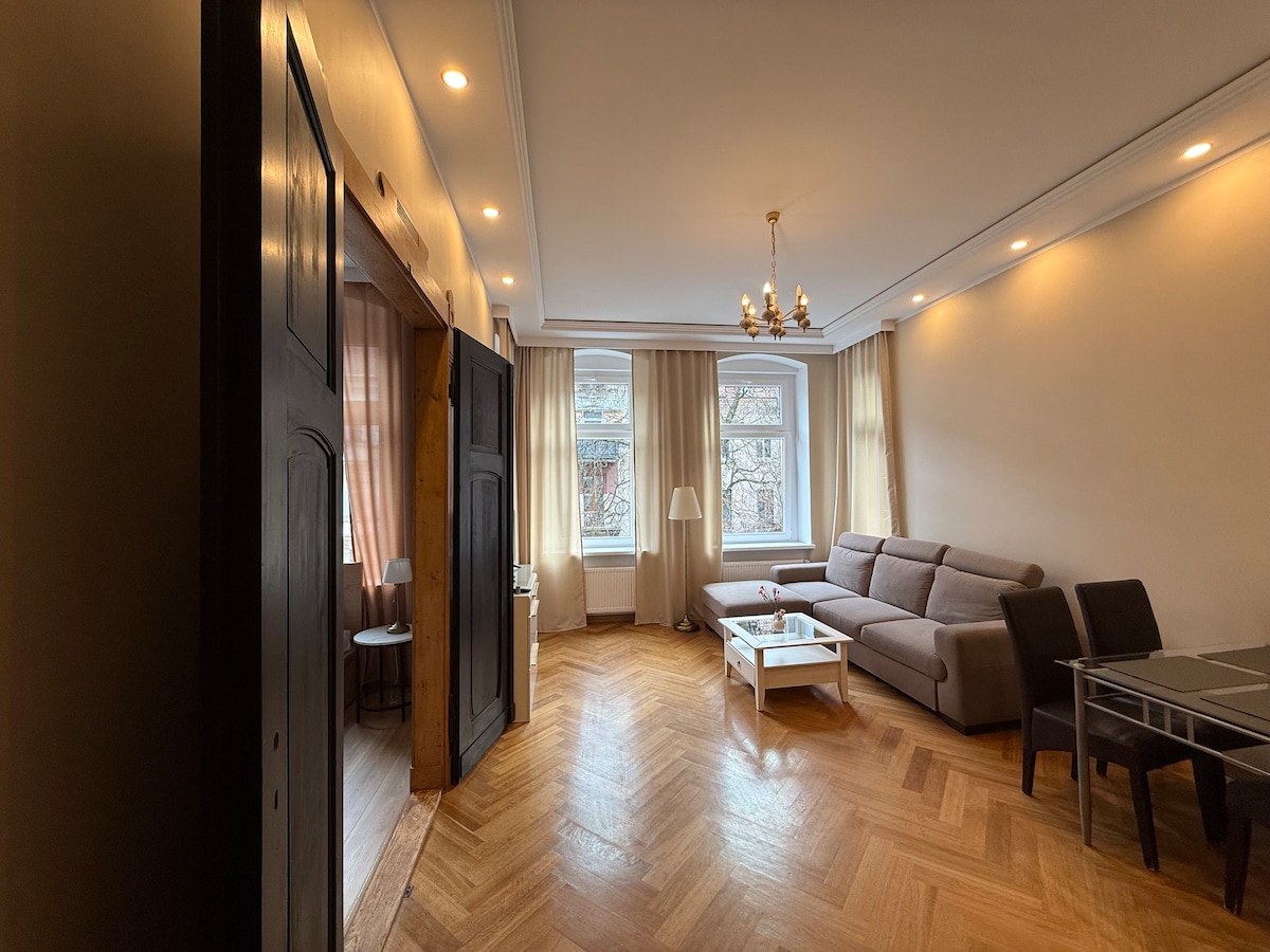 Przestronne mieszkanie znajduje się w pięknej, zadbanej kamienicy, która już od wejścia robi wrażenie i wprowadza w spokojny, przyjazny klimat. Wysokie sufity, duże okna i przemyślany układ sprawiają, że wnętrze jest jasne, komfortowe i naprawdę oddycha. Położone w świetnej lokalizacji – blisko centrum, a jednocześnie w bardzo spokojnej okolicy – daje idealną równowagę między wygodą a ciszą. Wszystko, co potrzebne, masz na wyciągnięcie ręki, ale bez miejskiego zgiełku za oknem.
