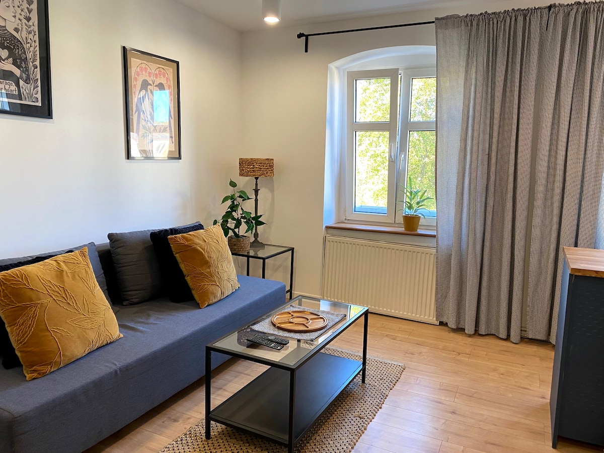 Enjoy a stylish experience at this centrally-located place. An unique apartment in the city center of Legnicy - located in the second floor of a beautiful building. The apartment has two rooms - the living room with a full equipped kitchen and a bedroom with a queen sized bed. The apartment is new renovated.