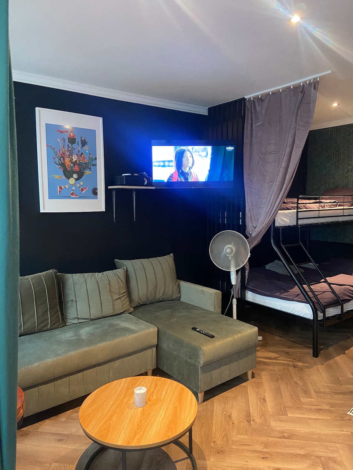 Dear Traveller, Please note that the apartment is suitable for up to two adults. Additionally, small child can sleep on a sofa in the living room, we will provide additional bedding. We invite you to our family home, please treat it well. It is tidy and has modern decor. We hope you will love staying as much as we do! Amenities: PS5 TV - Disney Plus - HBO Max - Netflix Working desk with monitor Nespresso coffee machine Dishwasher