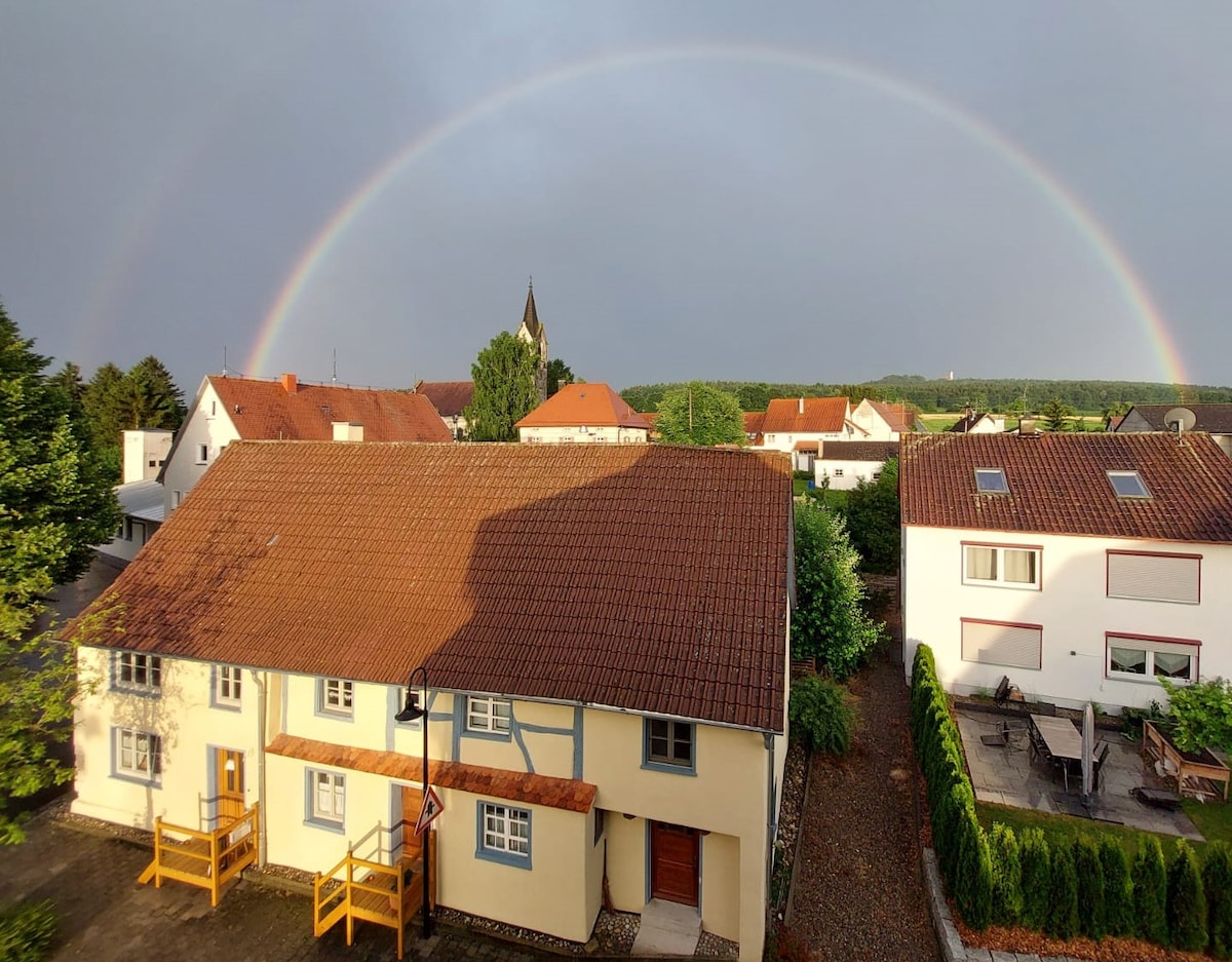Entdecken Sie unsere einzigartige Ferienwohnung! Mit 2 Schlafzimmern und Platz für bis zu 6 Gäste bietet sie eine atemberaubende Dachterrasse, offen gelegte Balken und eine charmante Galerie. Ideal gelegen am Donauradweg und nur 20 Minuten vom Legoland entfernt. Genießen Sie Komfort und Stil in historischem Ambiente!