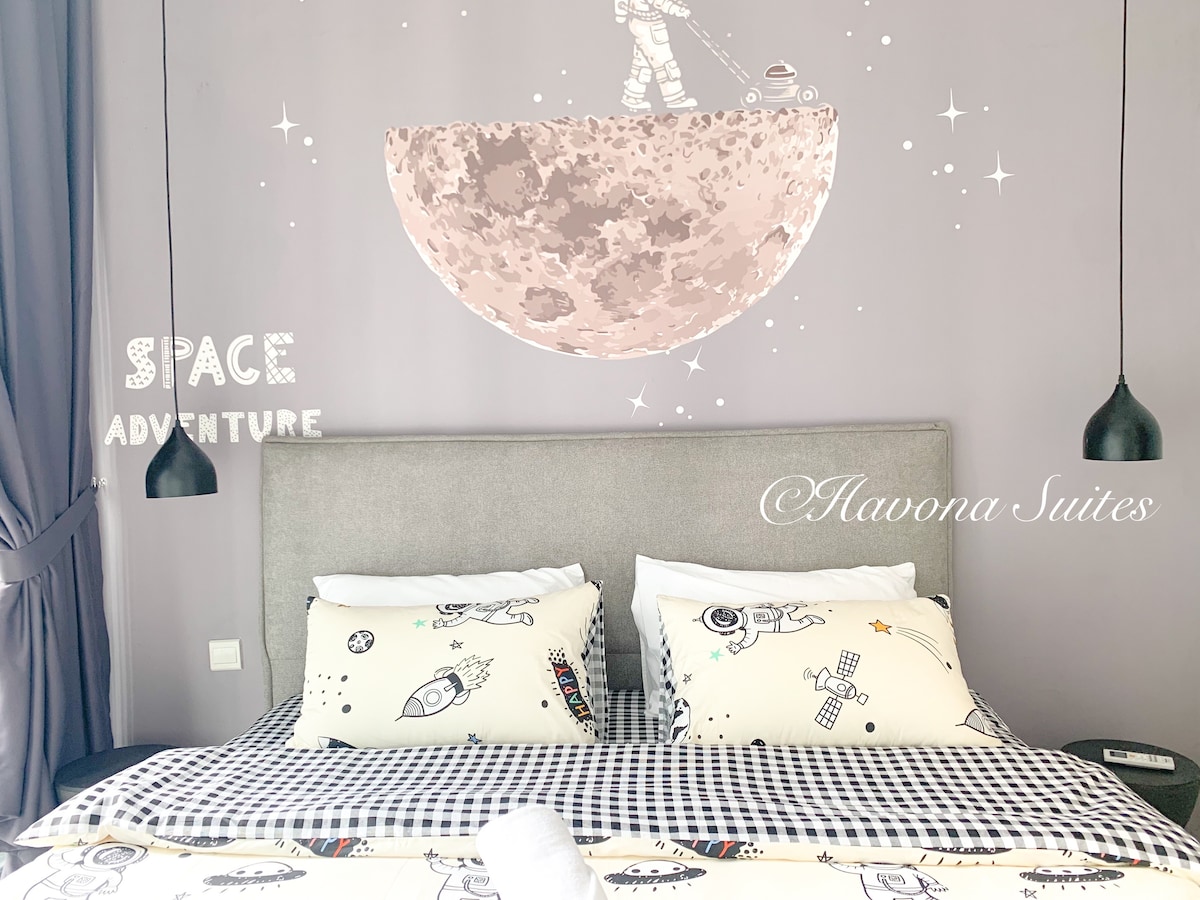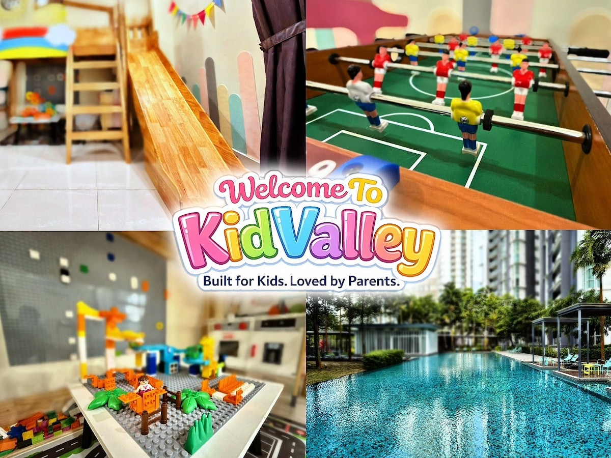 Modern design and comfortable Ultimate Kids-Friendly Haven Airbnb Experience 2-bedrooms just for you: - Master Bedroom: Loft Bedroom with Slides -2 Queen bed -Second Bedroom : Loft Bedroom Up-single bed Down- 1 Queen bed and Baby Cot Within walking distance to Legoland and Gleneagles Hospital, we offer easy unwinding for adults while kids invent their treasured memories . -Kid & Baby-Friendly Bed with Slides, High Lego Wall & Toys -Balcony Private view with Swings design