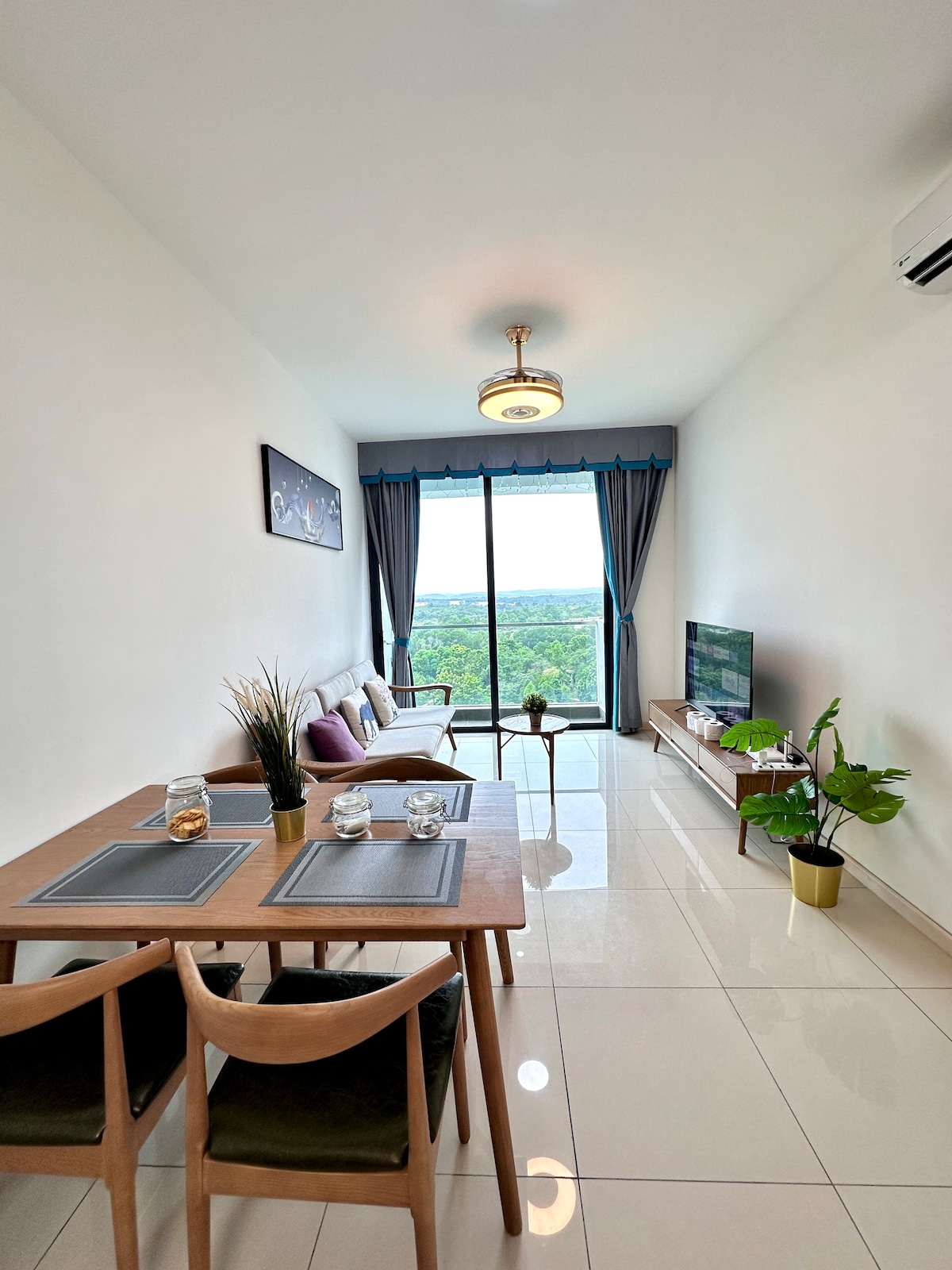 Elysia Park Residence 2bed 2Bath With one king size bed +one queen bed + 1 Single bed & Big sofa bed Can stay up to 6 pax . Suitable for family & friends gathering Peaceful & quiet environment Welcome to Zenith Homestay a place you can relax & chill with stunning view!