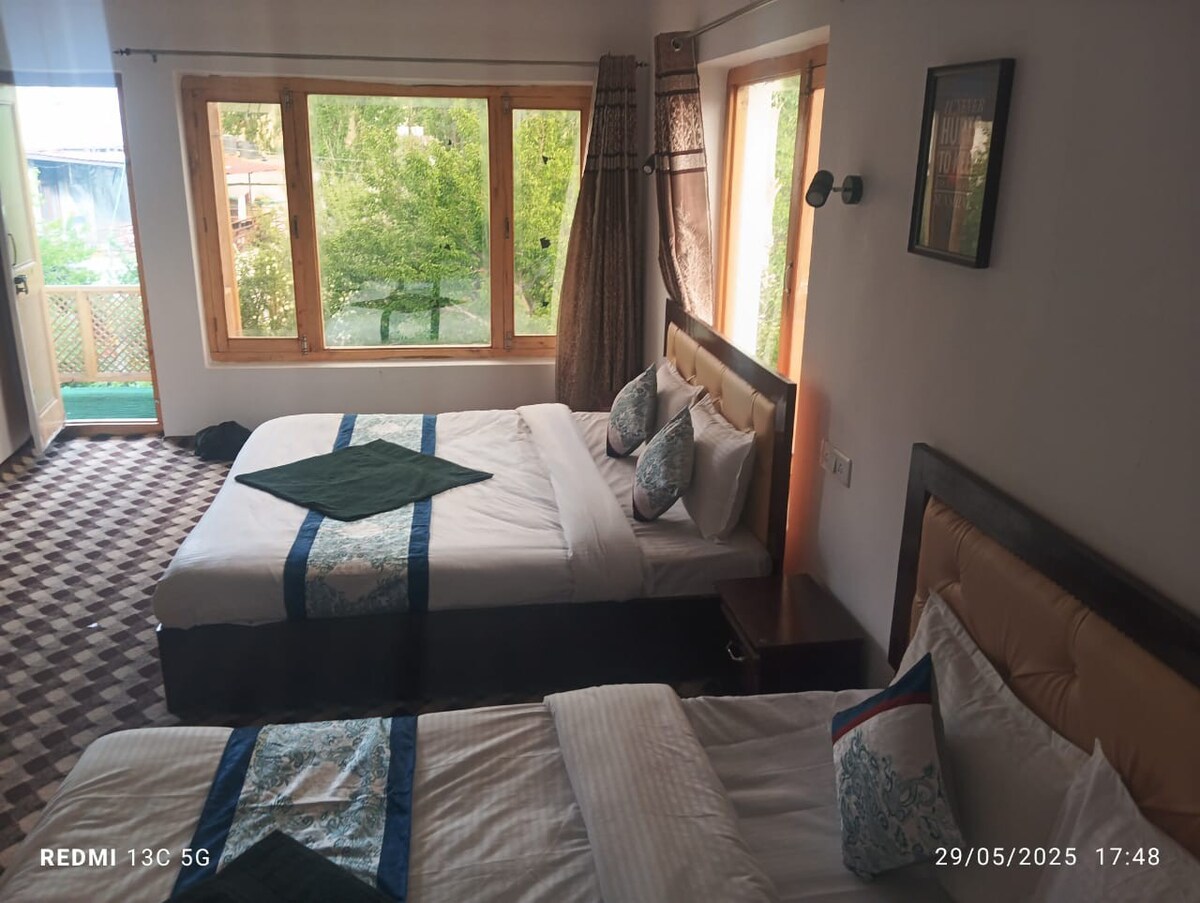 Leh Hotel Horzay is located on P.Namgyal road/ old road in the heart of Leh. It is 4-5 kms from the airport. The property is off the main road nestled between willows. Our property is a vintage property built in the earlys 80's. The interiors have been regularly renovated to ensure maximum comfort to our guests. The guest rooms are spacious and cozy. The rooms have poster beds or king size beds made of teak wood with comfortable bedding. The rooms are made in a way to get maximum natural light.