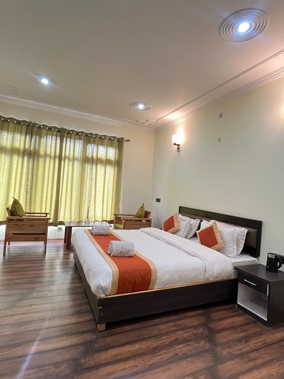 one of the best guest house in the town and located in the heart of the city with just 5 min walk to the market and just 10min drive away from the airport . rooms having views of the Himalayas. taxi and bikes arrangements are done here. the property also consist of a small garden with a apple tree.