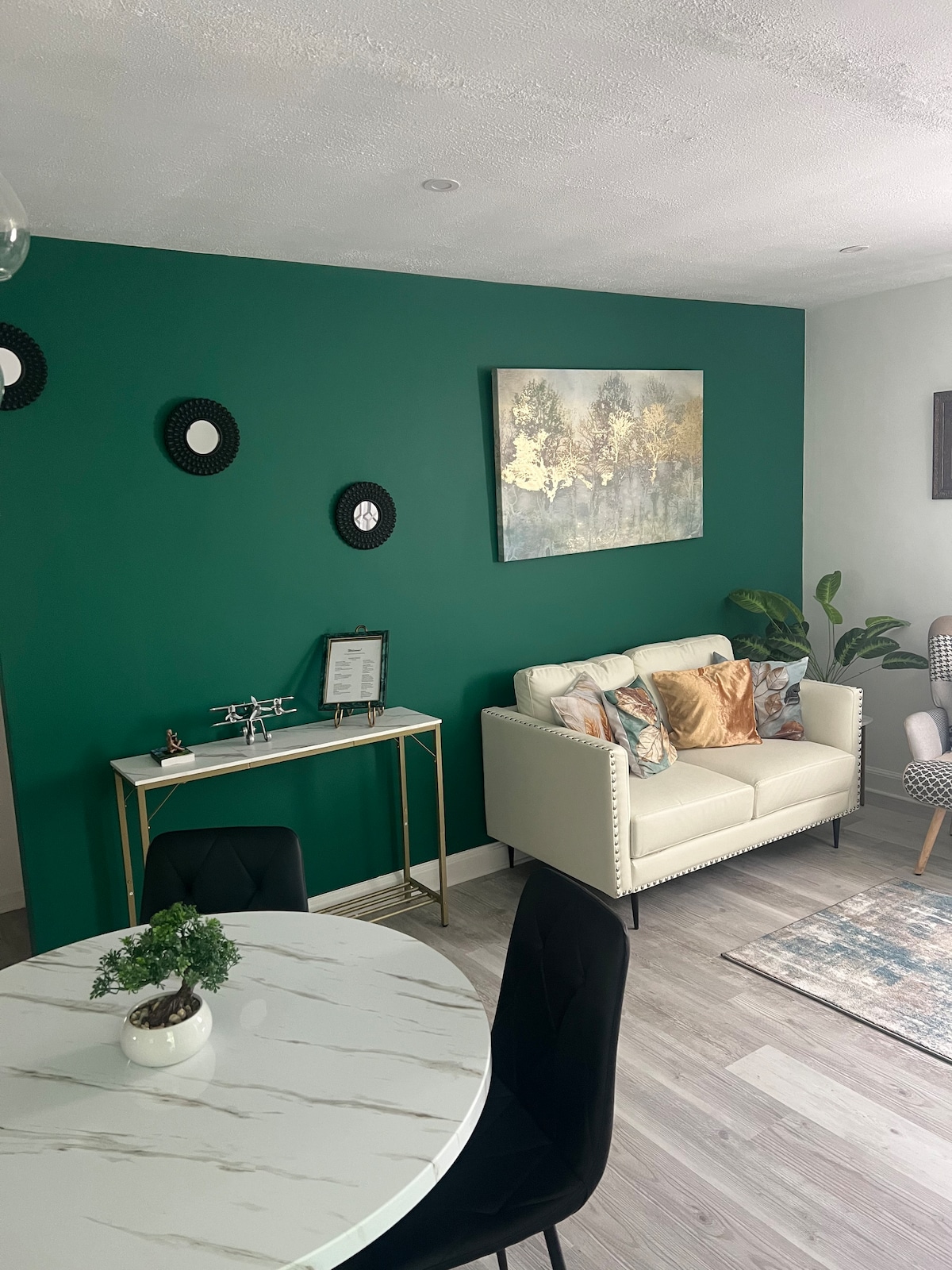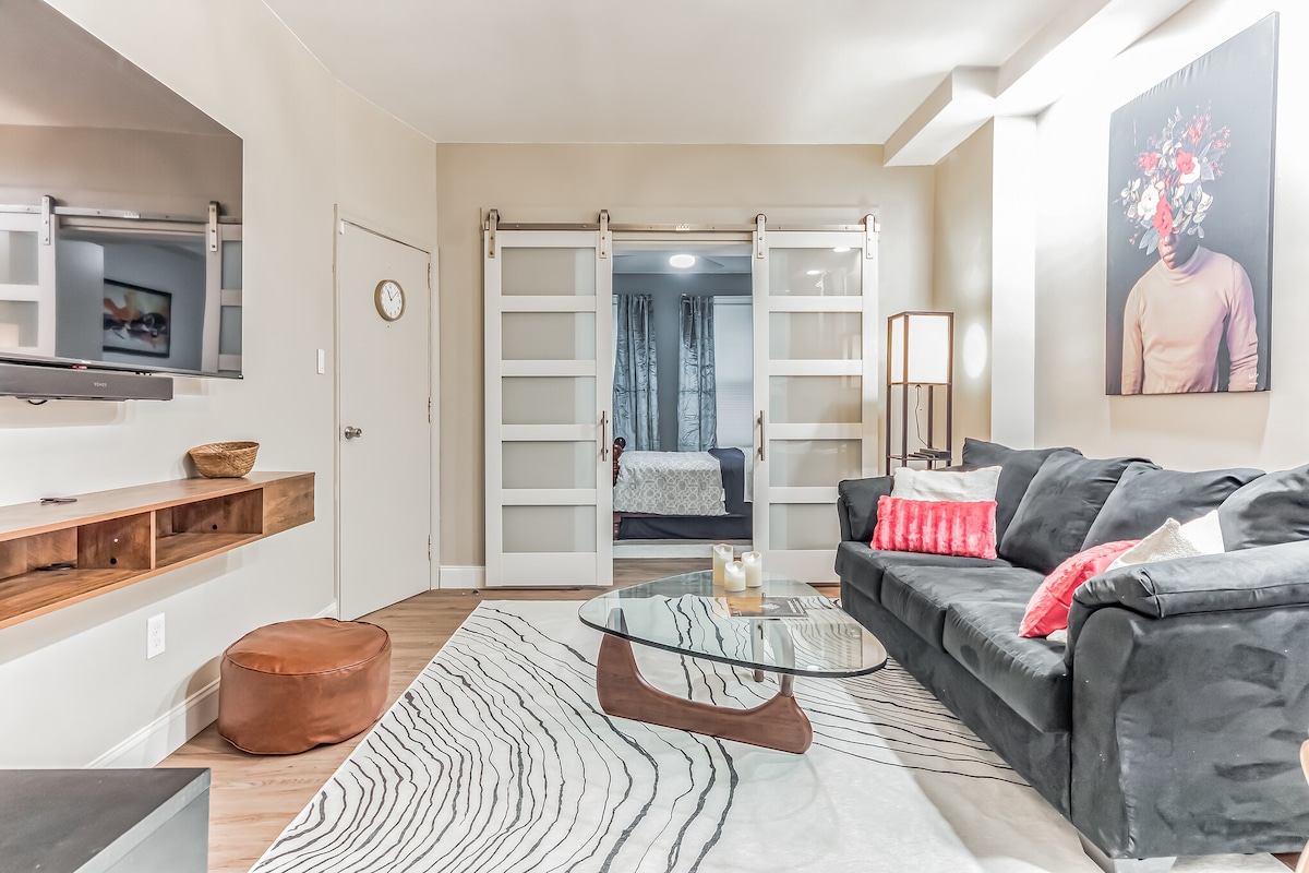 Welcome to a quiet retreat in Allentown, PA, ideally situated on Hamilton Blvd, the main drag near major highways, yet offering a peaceful escape. This 2-bedroom, 1 bath, 950 sq ft apartment is on the lower level of the beloved "Little Blue Guest House" and includes a king bed in one room and a full bed in the other, accommodating up to four guests. It has a fully stocked kitchen and bright south-facing egress windows to make your stay truly comfortable while being close to everything.