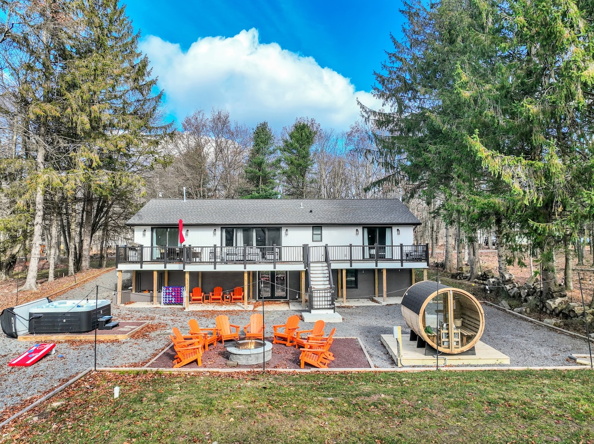 Cozy Modern Pocono Cabin | Firepit Nights • BBQ