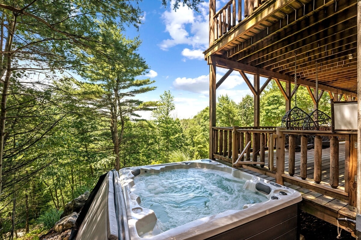 质朴的山脊木屋:热水浴缸、游戏、景观!