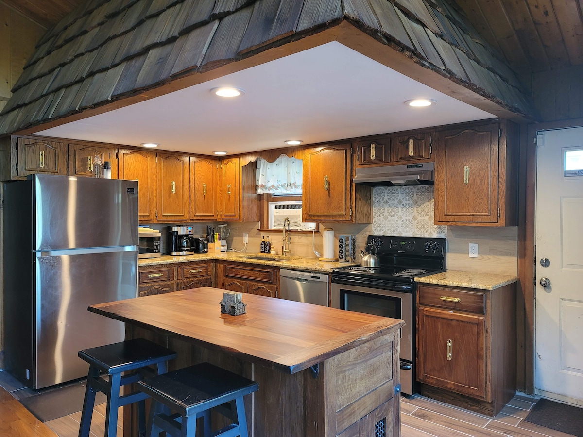 度假木屋*火坑*W/D*热水浴缸*壁炉*电动车