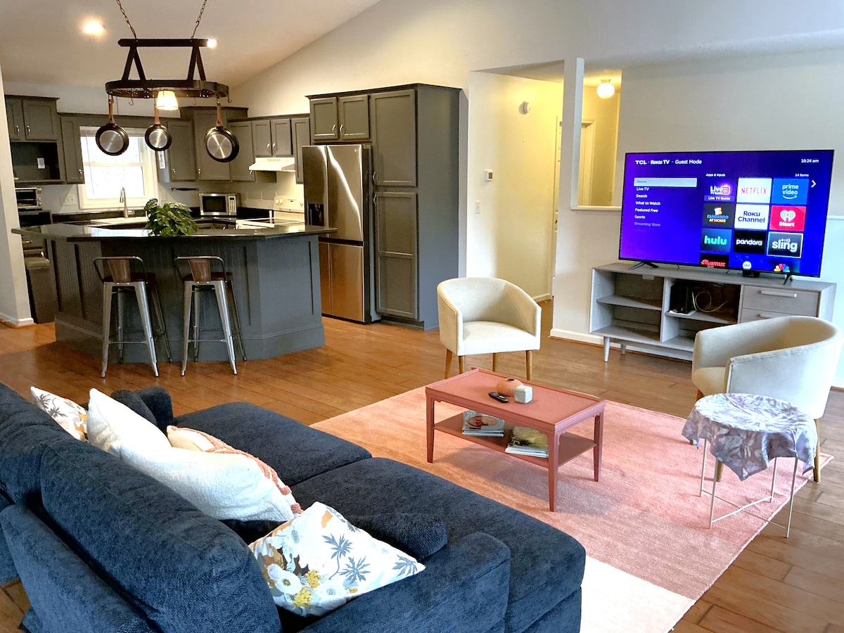 THE SPACE IS ALL YOURS! The Woodfin is a chateau de bro, chalet de bae, camp for champs, and home for the roaming adventurer. Nestled in a quiet neighborhood just a 5 to 7-minute drive from downtown, this private dream pad is the perfect hub for couples, friends, and family to explore everything Asheville. Recharge in the high-end Tempurpedic TEMPUR-Cloud® bed for an unbeatable nights sleep! Fully equipped kitchen. Professionally cleaned!!