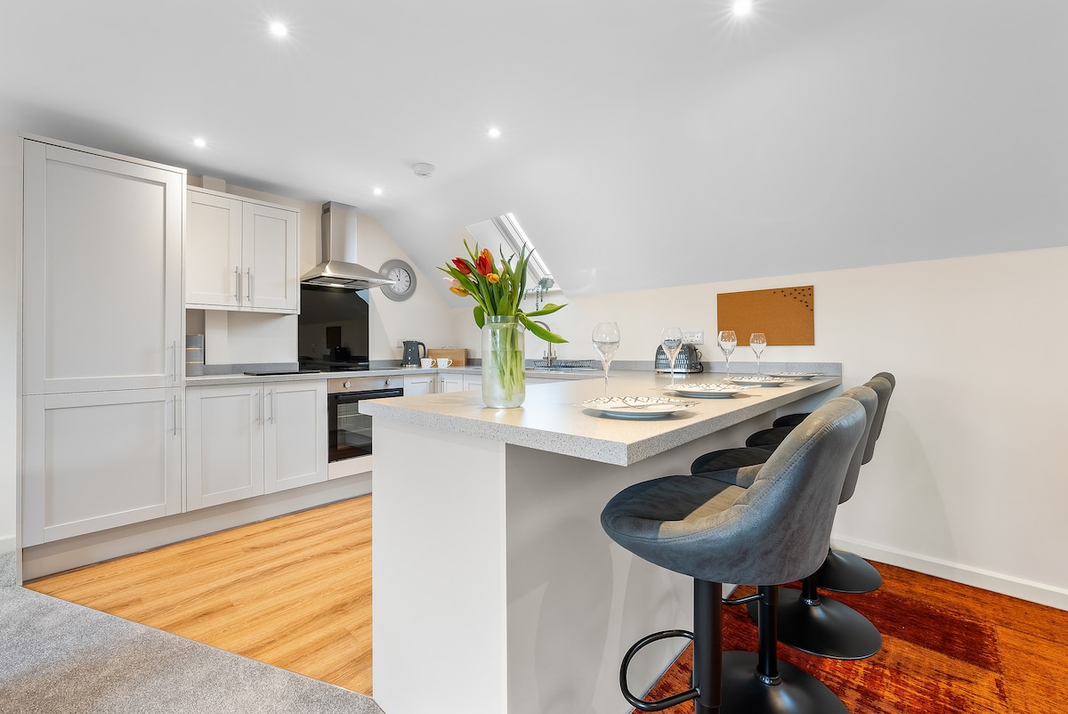 After our storming success for 6 years with our cosy Hayloft Apartment, we have totally refitted the bathroom, installed a brand new kitchen and added a single bedroom / study. Fresh paint, blinds and carpets throughout! Guests have dedicated parking [Now with EV Charging] a private patio for sunny breakfasts, lunches or sundowners. Home-cooked ready meals are available in the fridge or freezer when you arrive. Message when you book and we can supply details. The Welcome pack's a big hit.