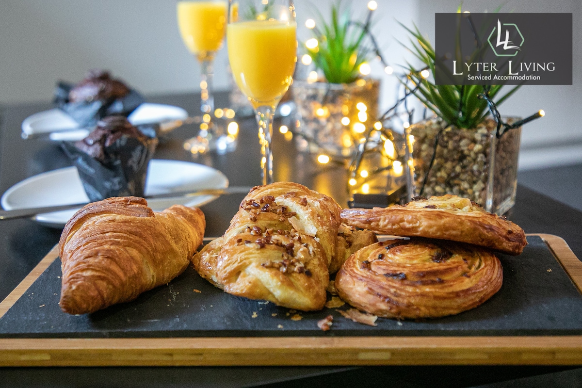 Awarded 'Top 5 National Airbnb Host Awards for Design' and in the 'Top 1% Airbnb' globally in 2024, our 3-bedroom penthouse in Leicester's Cultural Quarter is ideal for families, couples, business travelers, and reunions. Enjoy a sleek, open-plan mid-century style with breathtaking floor-to-ceiling glass walls and a serene treetop ambiance. Just a 5-minute walk from theatres, restaurants, cafes, and entertainment. Book now for an unforgettable stay with stunning views and top-tier amenities.