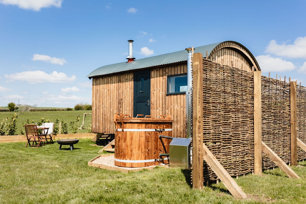 Our rustic-luxe eco shepherd’s hut is surrounded by nature and serenaded by birdsong, where in-the-know modish types come to unwind. It may be a hut but step through the French doors and the sheer style will blow you away: a rolltop copper bath…it’s all very special. The ultimate thing to do here is throw open the double doors, pop a bottle of fizz and climb into the bath tub or fire up the hot tub for an alfresco soak and star gaze around the fire fit.