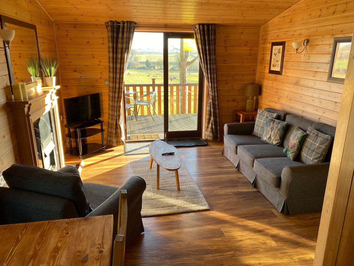 Well equipped lodge in private grounds at Breedon on the Hill. Super cosy and insulated for winter breaks. Great walks, riding if you bring your horse, or for some peace, quiet and self isolation. Lodge has large bedroom en-suite with a separate shower, jacuzzi bath and sauna. Wonderful open plan kitchen dining and living room with exceptional views and private decking. Lodge is fully equipped plus fast broadband for working remotely. The village has 2 pubs and shop. Easy access to motorway.