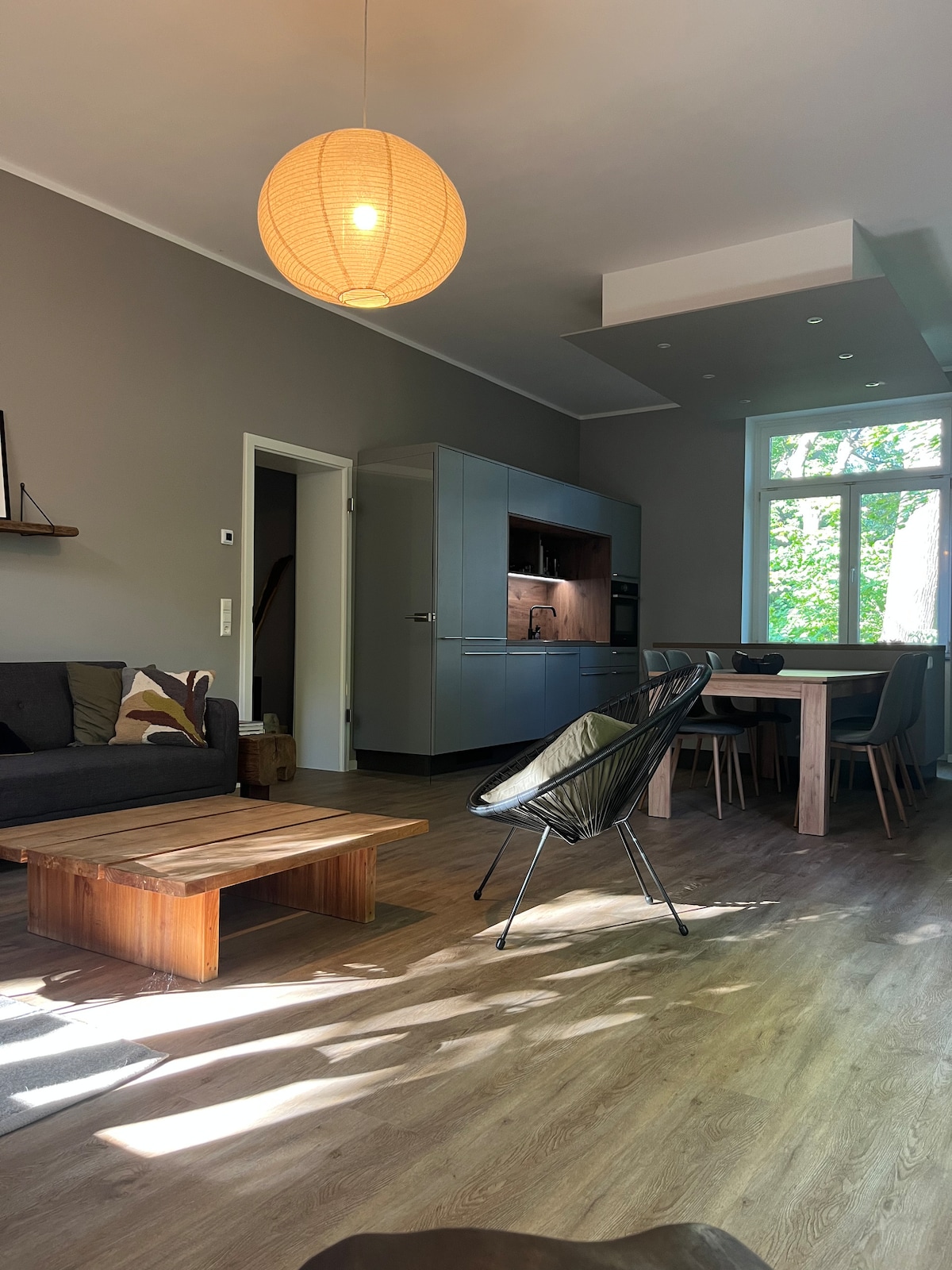Wohnen unmittelbar am Karl-Heine-Kanal im hippen Leipziger Westen. Hier "wohnt" die Kunstszene (Westwerk, Buntgarnwerke, Kunstkraftwerk...). Unweit vom Objekt beginnt das sog. Neuseenland. Eine Rudertour auf dem Kanal gefällig oder schnell in der Innenstadt. Alles kein Problem von der gemütlichen Unterkunft mit Blick auf den Karl-Heine-Kanal. Z.Z. sind auf dem Jahrtausendfeld Tiere (u.a. Kamele), natürlich ohne Garantie. Die Wohnung ist getrennt vom Haus, ruhig gelegen, trotzdem mittendrin.