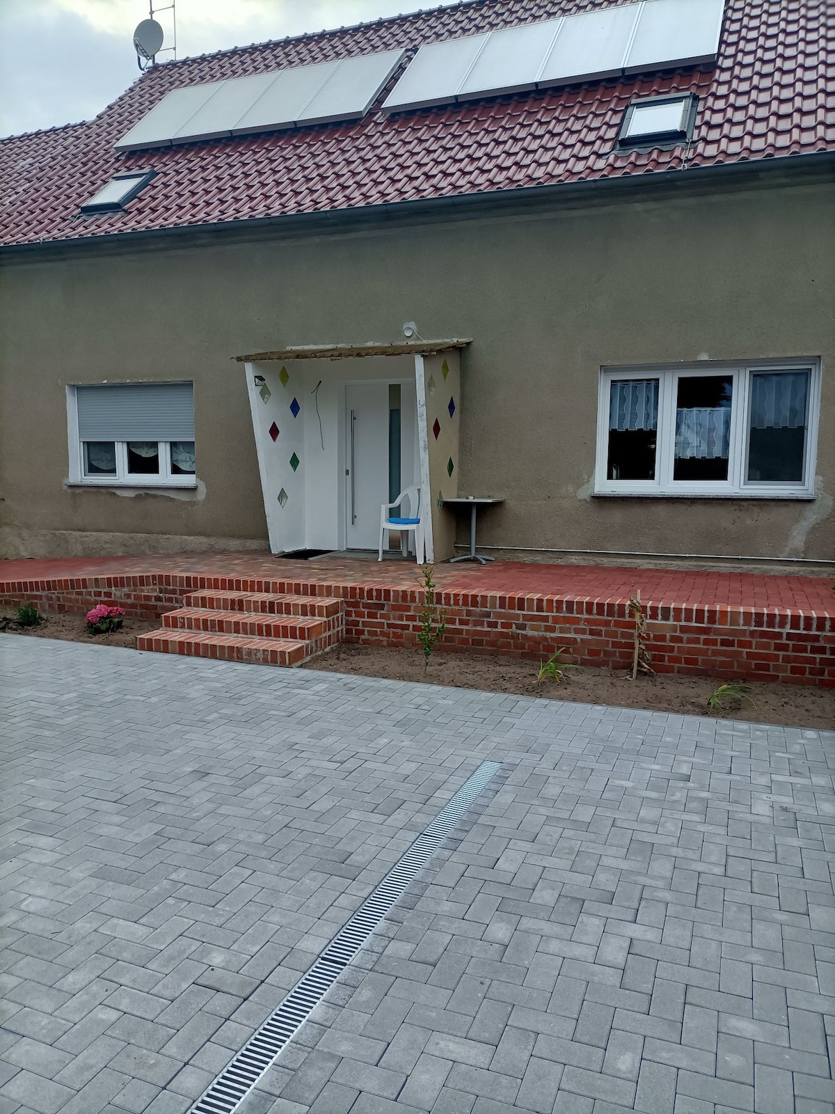Wir von Frida's Bauernhof bieten hier unsere kleine Ferienwohung im Erdgeschoss an. Die Räume wurden mit Liebe zum Detail renoviert und eingerichtet. Die Unterkunft besteht aus einer Küche mit Zugang zur Terrasse, einem Wohnzimmer, welches mit einer Schlafcouch ausgestattet ist und einen Bad mit Fenster. Diese Räume stehen Ihnen zur alleinigen Nutzung zur Verfügung. Jedoch befindet sich das Bad nicht direkt an den Wohnräumen. Zugang erfolgt über einen gemeinschaftlich genutzen Flur.