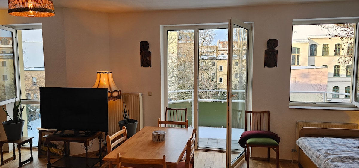 WELLNESS OASIS w/ ROOFTOP Stay by the Central Park in a historic Gründerzeit house #friends #family #couples Enjoy my bright attic loft: *Boho vibe + plants *Space for yoga/workout/massage *Relax in bean bags/hammock *No traffic noise NOTE If booking solo (room with key), I may use main area too. EXTRA on request: In-house massage (also for couples) LOCATION *9 min to main station (tram) *1.6km to arena *Free street parking QUIET TIME 10pm–8am NO airconditioning