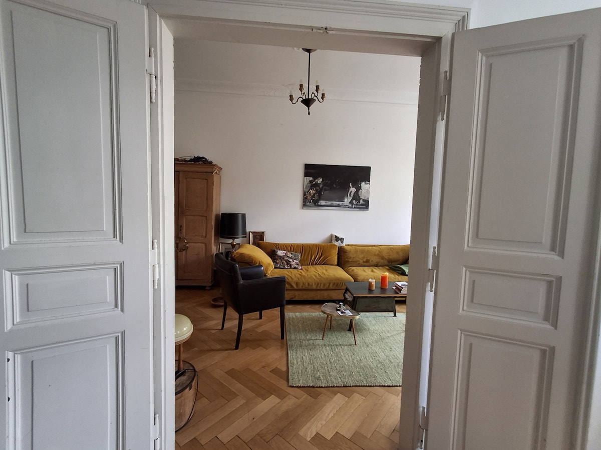 Centrally located and with a special atmosphere: guests can live and work temporarily in this artist-in-residence apartment. The 75 sqm apartment has two bedrooms, a kitchen, bathroom, hallway and a balcony. Classic fireplace stoves provide warmth and a calm, decelerated living atmosphere, giving the apartment its own character. Wood and coal are available. Beds: 1.80 m & 1.60 m The apartment can also be booked by room (separate listings available).