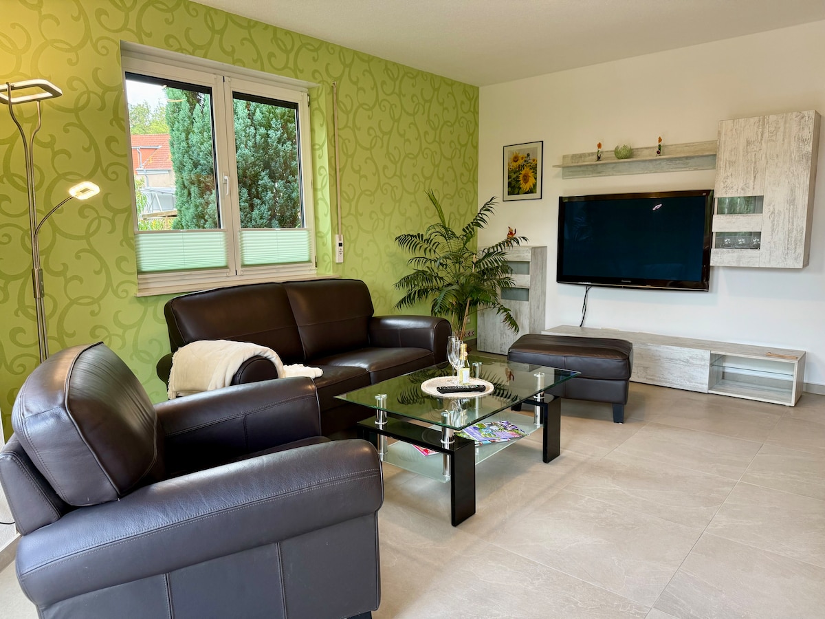 Modern, stylishly furnished holiday home in a peaceful location at Kulkwitzer See – Perfect for relaxation & adventure Perfect for families & friends! 85 sqm, accommodates up to 6 guests. Highlights: - Fully equipped kitchen & comfortable living area 1,000 sqm large garden for barbecuing, sunbathing & relaxing - Private sauna for ultimate relaxation - Quiet location in nature, ideal for rest & outdoor activities Book your unforgettable stay at Lake Kulkwitz now!