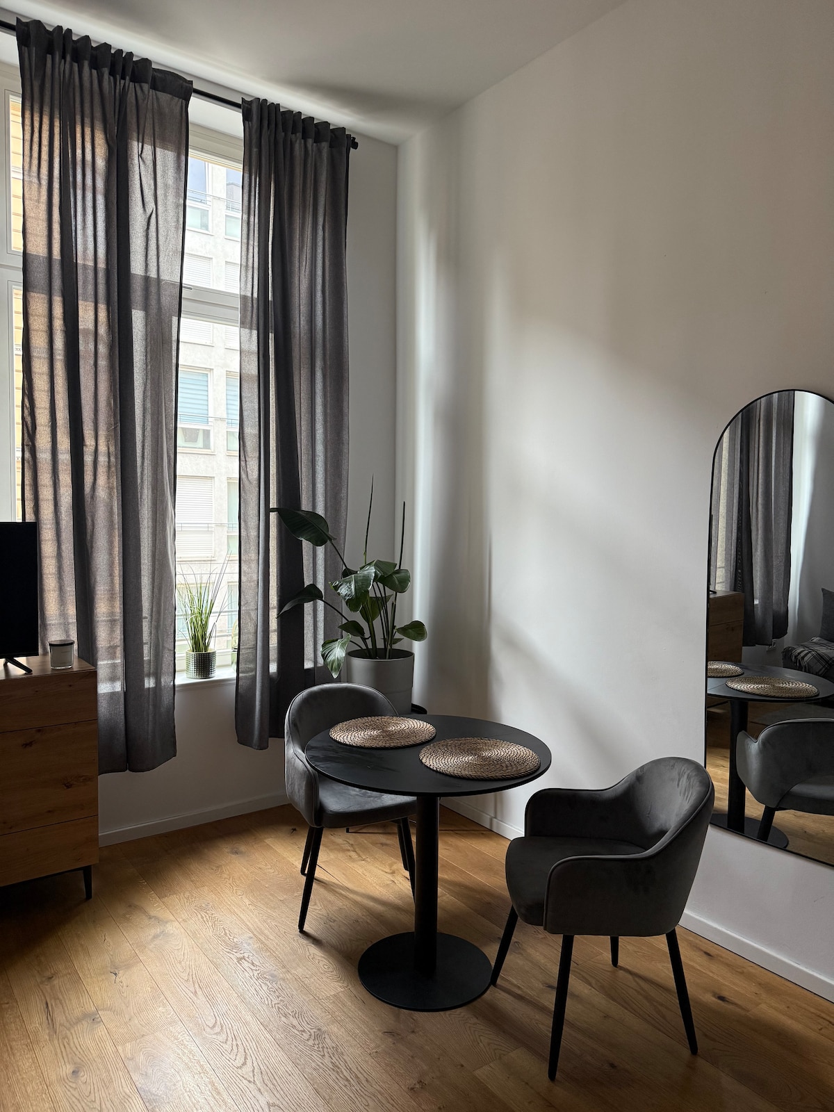 Helles, zentrales Studioappartment perfekt für Alleinreisende und Paare. Ihr braucht zu Fuß nur ca. 15 Minuten ins Stadtzentrum, mit der Tram oder dem Auto nur ca. 5 Minuten. Die Wohnung ist modern eingerichtet, verfügt über eine kleine Küchenzeile inklusive einer kleinen Kaffeemaschine und Mikrowelle, und einem Doppelbett. Das Highlight ist das große und helle Bad mit Tageslicht.