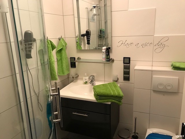 Ca. 40qm großes, sauberes und helles Apartment mit Küchenecke, Wohnbereich und abgetrennten Schlafbereich. Sehr schönes, helles Bad mit Dusche und WC und integrierter 2-Mann-Sauna (Klafs). Ideal zum Entspannen nach Spaziergängen in der kalten Jahreszeit. Das Apartment befindet sich im 3. Stock und hat einen eigenen separaten Eingang. Die Vermieter wohnen im gleichen Haus. Zum Apartment gehört ein abgeschlossener Parkplatz. Fahrräder können auf dem Hof sicher abgestellt werden. Hippe Umgebung.
