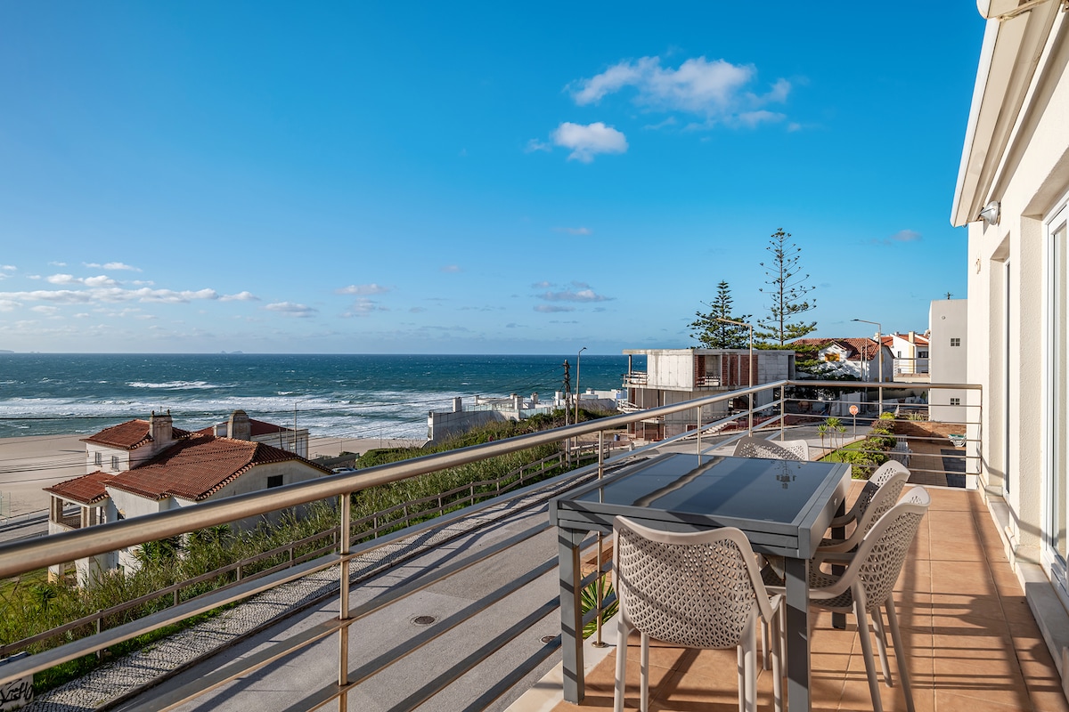 A newly renovated modern-coastal style Two bedroom apartment with spectacular views over the Atlantic Ocean and picturesque Nazaré Village and its hills, located in Sitio, a stone throw away from the Big Wave Lookout as well as Nazaré village and its beaches, whether watching the sun rise with a coffee, or the sun set with a glass of wine on the balcony you will be mesmerised by your surroundings. The apartment is perfect for couples and families on holiday, remote workers, long stays