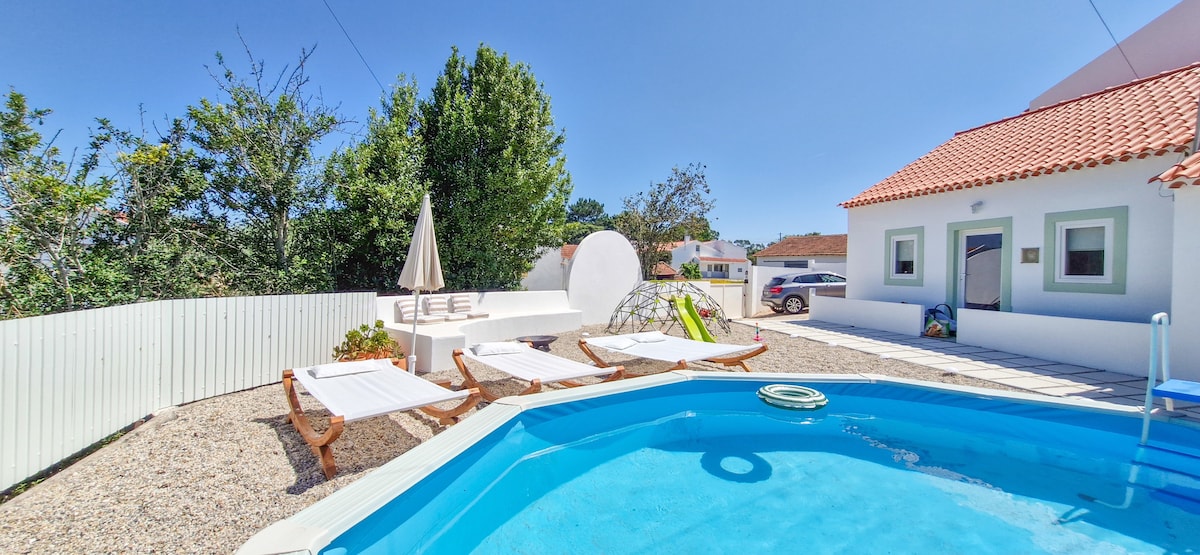 Refúgio de charme nas Gaeiras, Óbidos! Casa acolhedora para até 12 pessoas, com piscina privada, jacuzzi, banheira de hidromassagem, churrasqueira e fornos a lenha. Quatro quartos confortáveis e ambiente tranquilo, ideal para famílias, amigos ou casais. A 5 min. de Óbidos, a 3 min. Caldas Da Rainha e 15 min. da Foz do Arelho. Perfeita para relaxar, explorar e criar novas memórias!